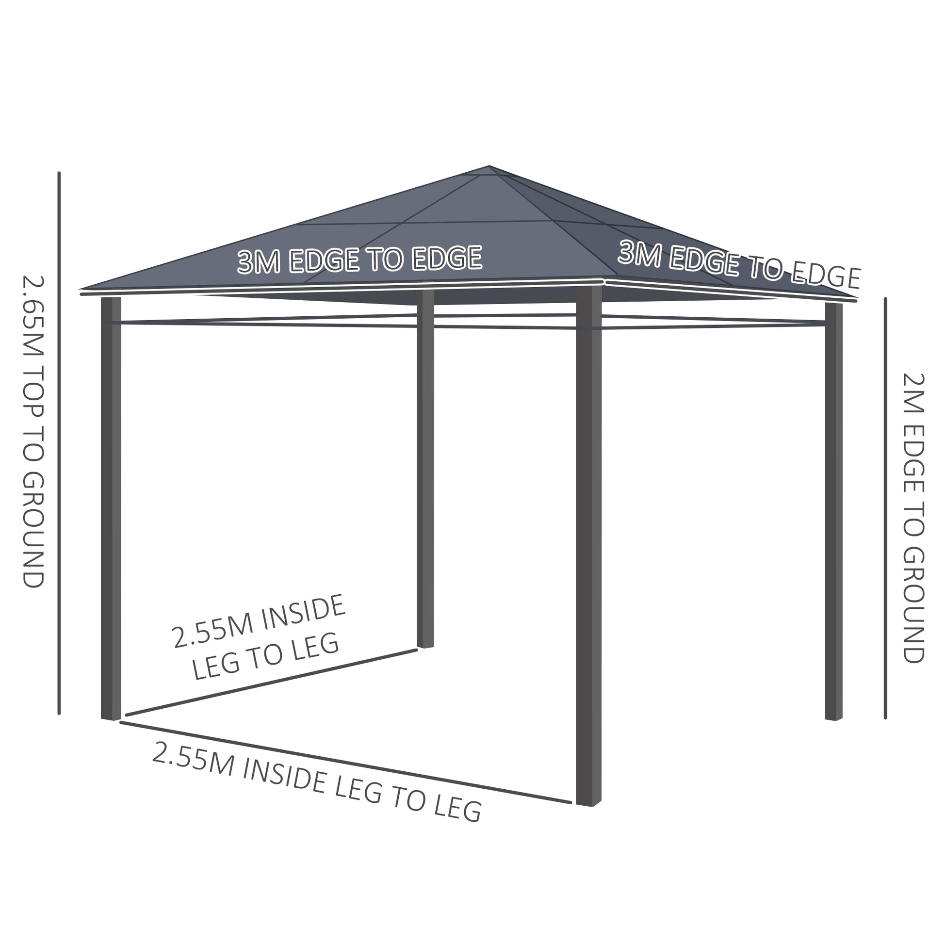 Outsunny 3 x 3(m) Hardtop Gazebo Canopy with Polycarbonate Roof, Permanent Pavilion Garden Gazebo with Curtains for Patio, Deck, Grey