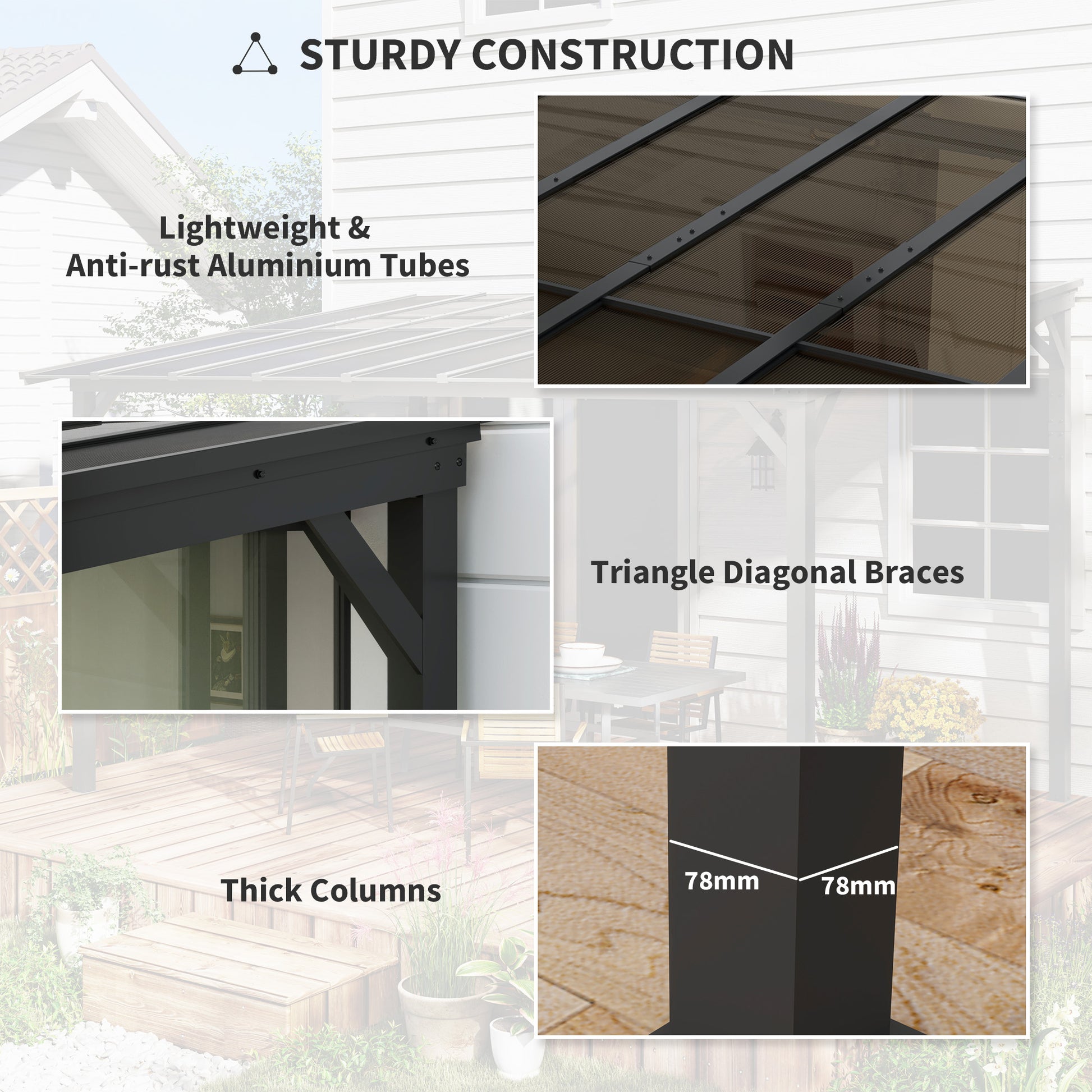 Outsunny 3 x 3(m) Metal Pergola with UPF 50+ and Waterproof Polycarbonate Roof, Wall-Mounted or Free Standing Garden Gazebo, Wind-resistant Outdoor Sun Shade, Dark Grey