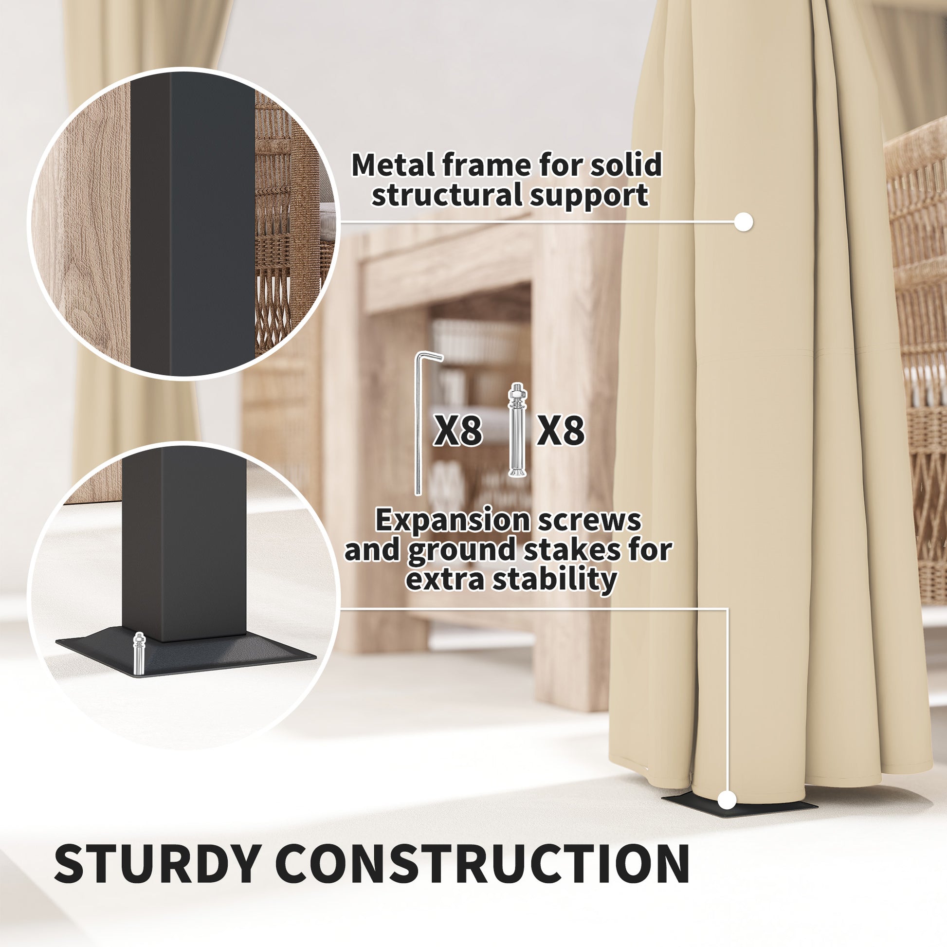 Outsunny 3 x 3m Retractable Roof Pergola, with Curtains - Khaki