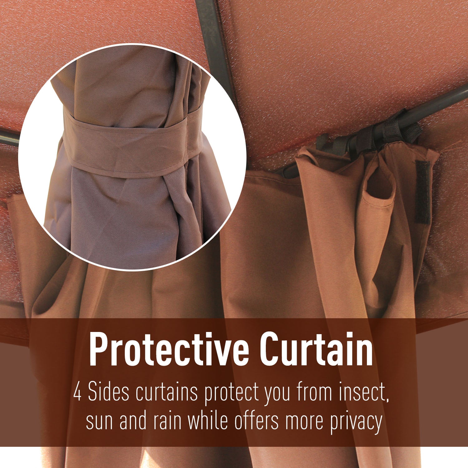 Outsunny 3 x 4m Garden Gazebo, Double Roof Marquee Canopy Shelter with Sidewalls, Solid Steel Frame for Garden, Lawn, Backyard and Deck
