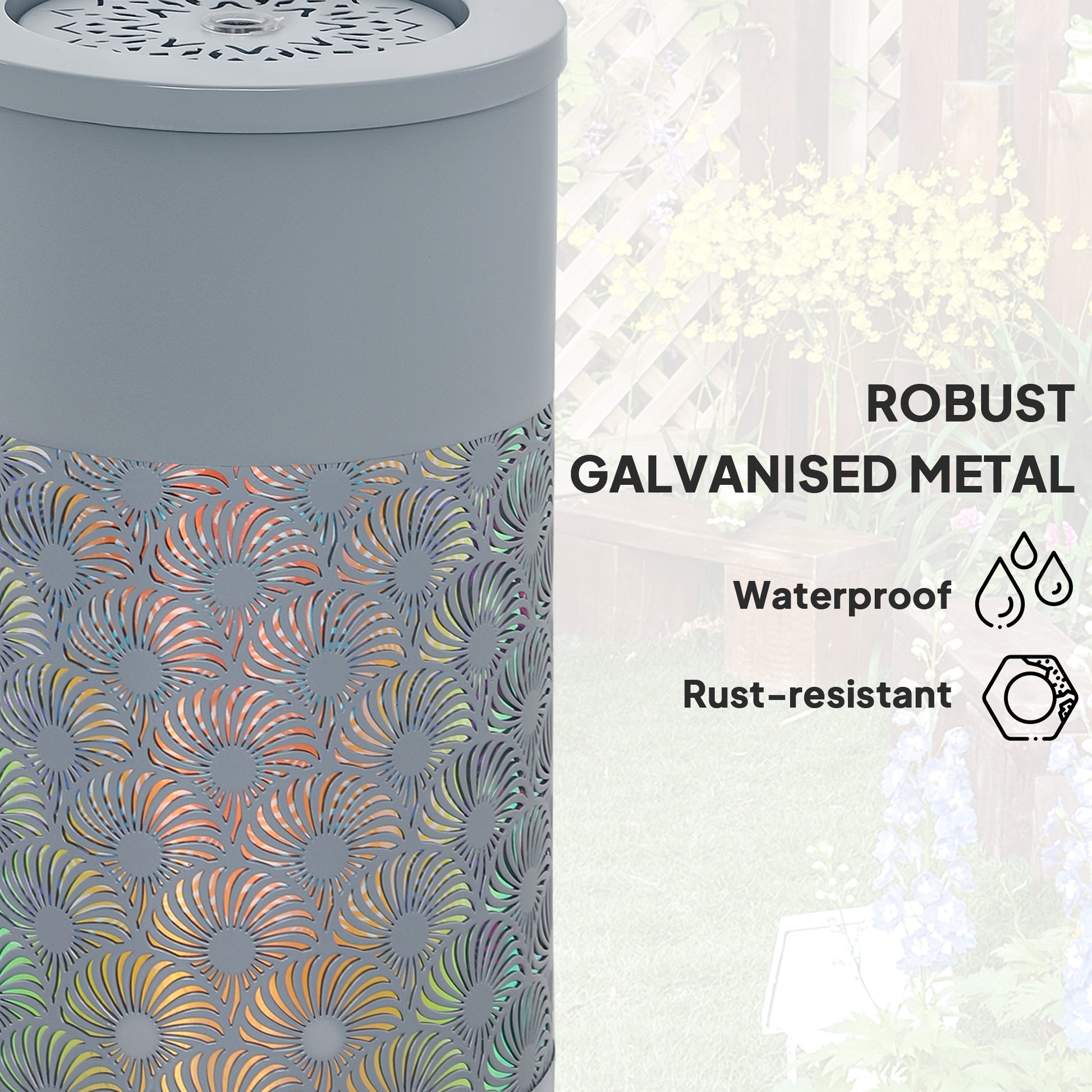 Outsunny 30 cm Tall Garden Waterfall Fountain with LED Lights and Pump, Garden Water Feature Water Fountain with Adjustable Flow and Cut-out Design for Indoor and Outdoor Decor, Light Grey