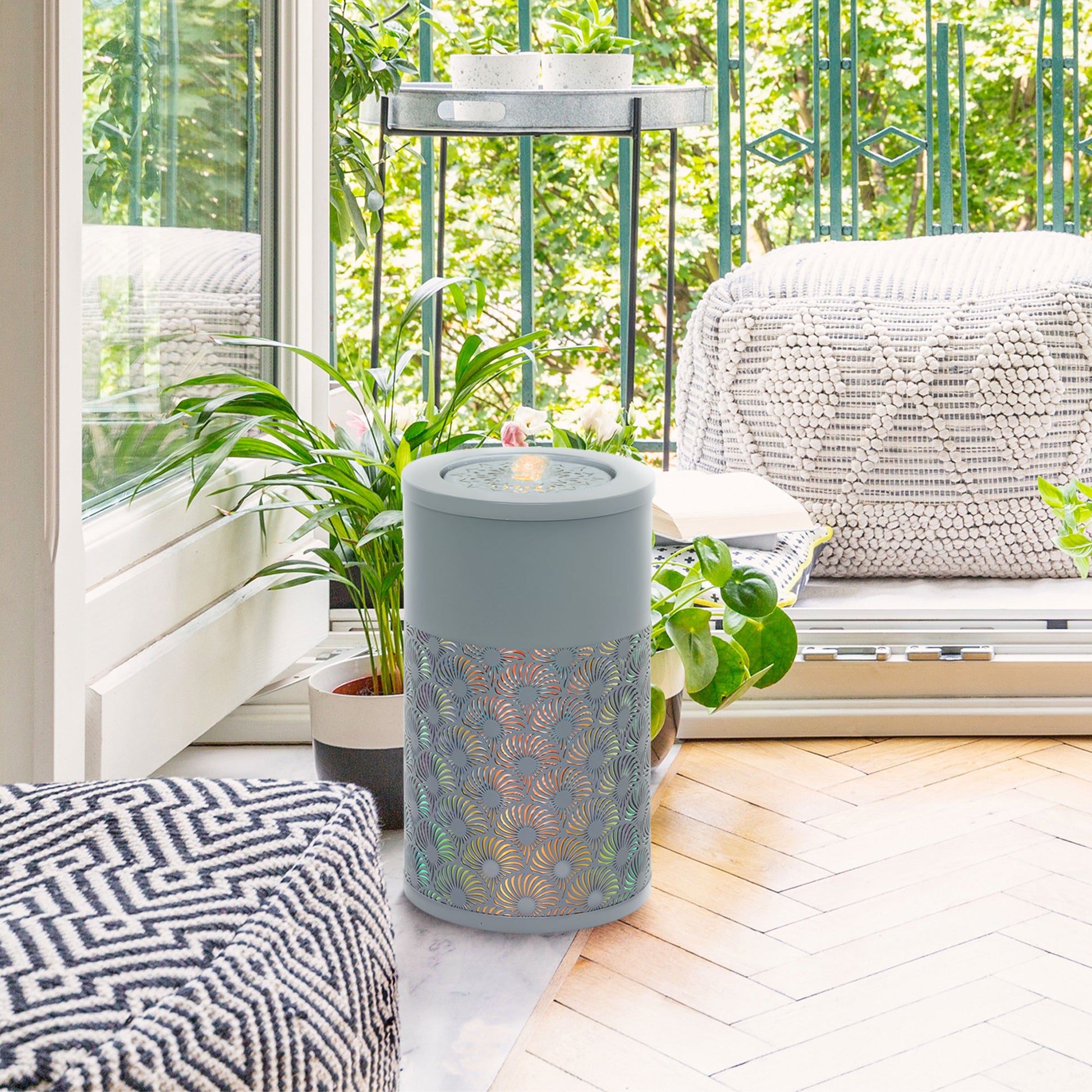 - Water sprays from the top, creating a soft, tranquil ambiance