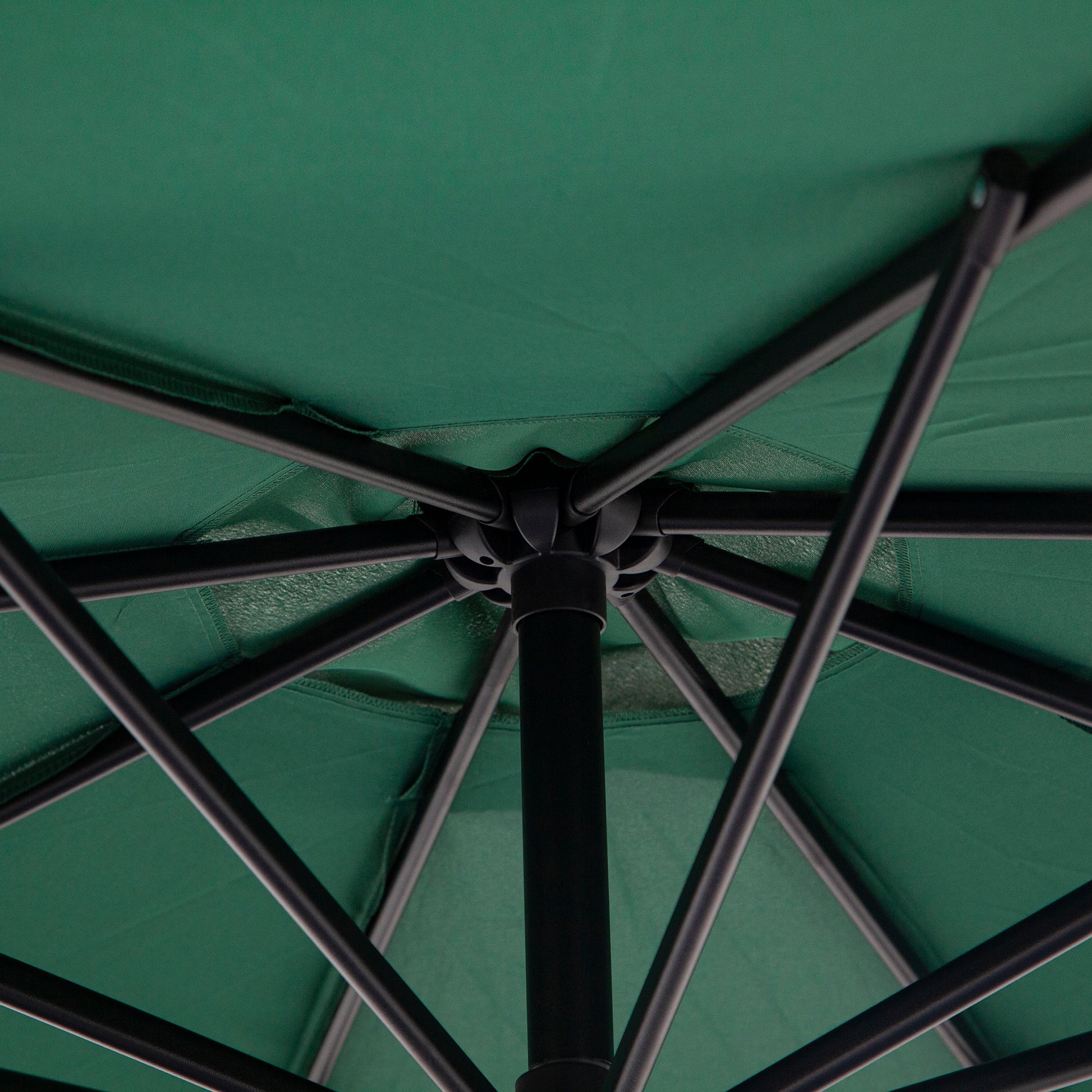 Outsunny 3(m) Banana Parasol Hanging Cantilever Umbrella with Crank Handle, 8 Ribs and Cross Base for Outdoor, Sun Shade, Dark Green
