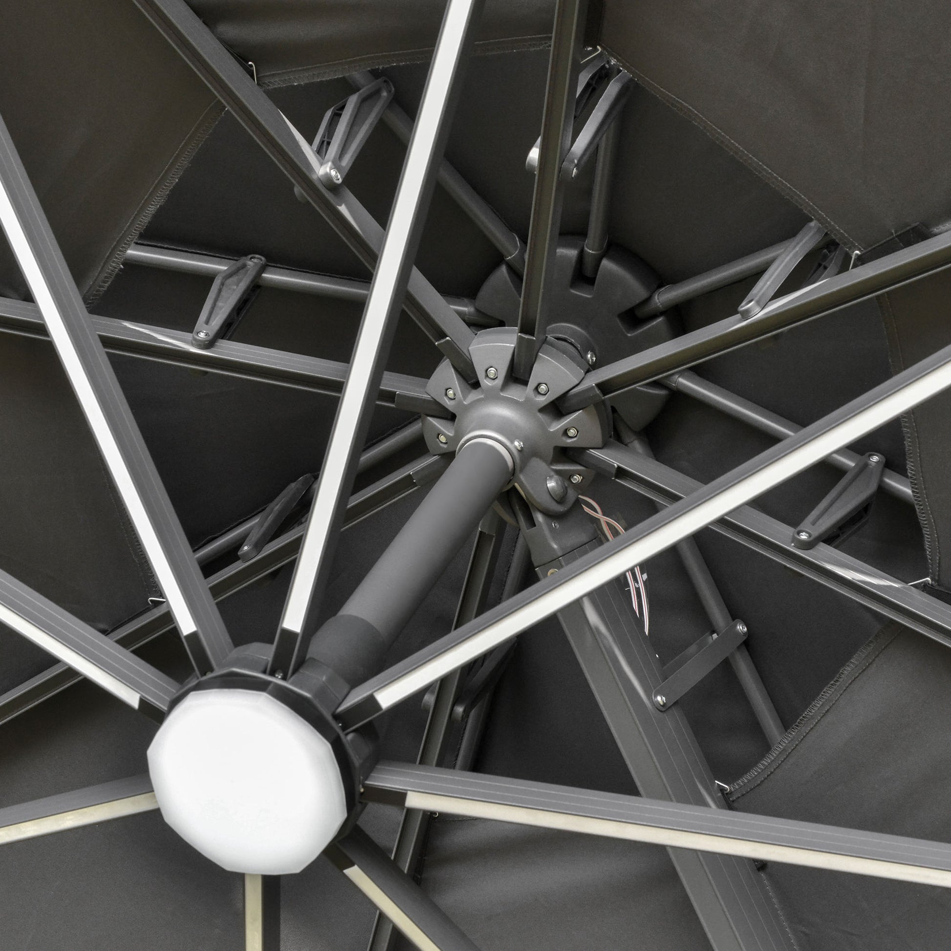 Outsunny 3m Cantilever Parasol w/ Solar Lights Power Bank Base 360° Spin Dark Grey