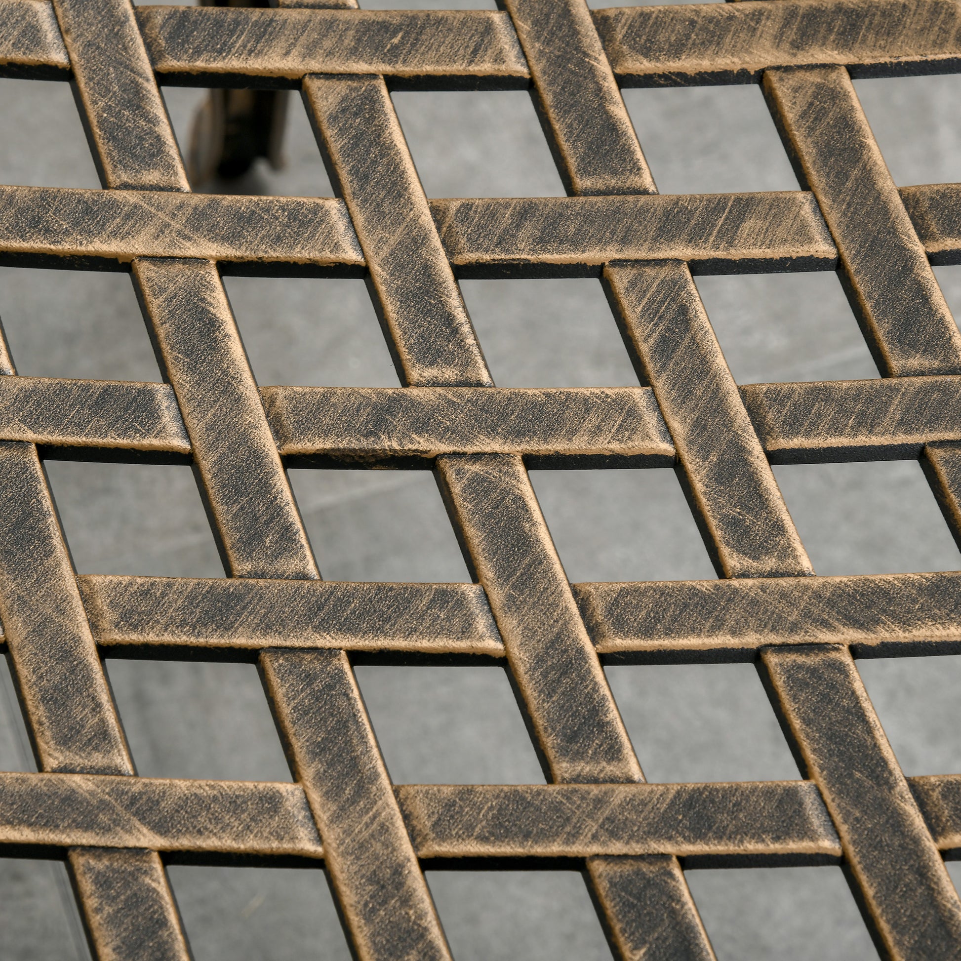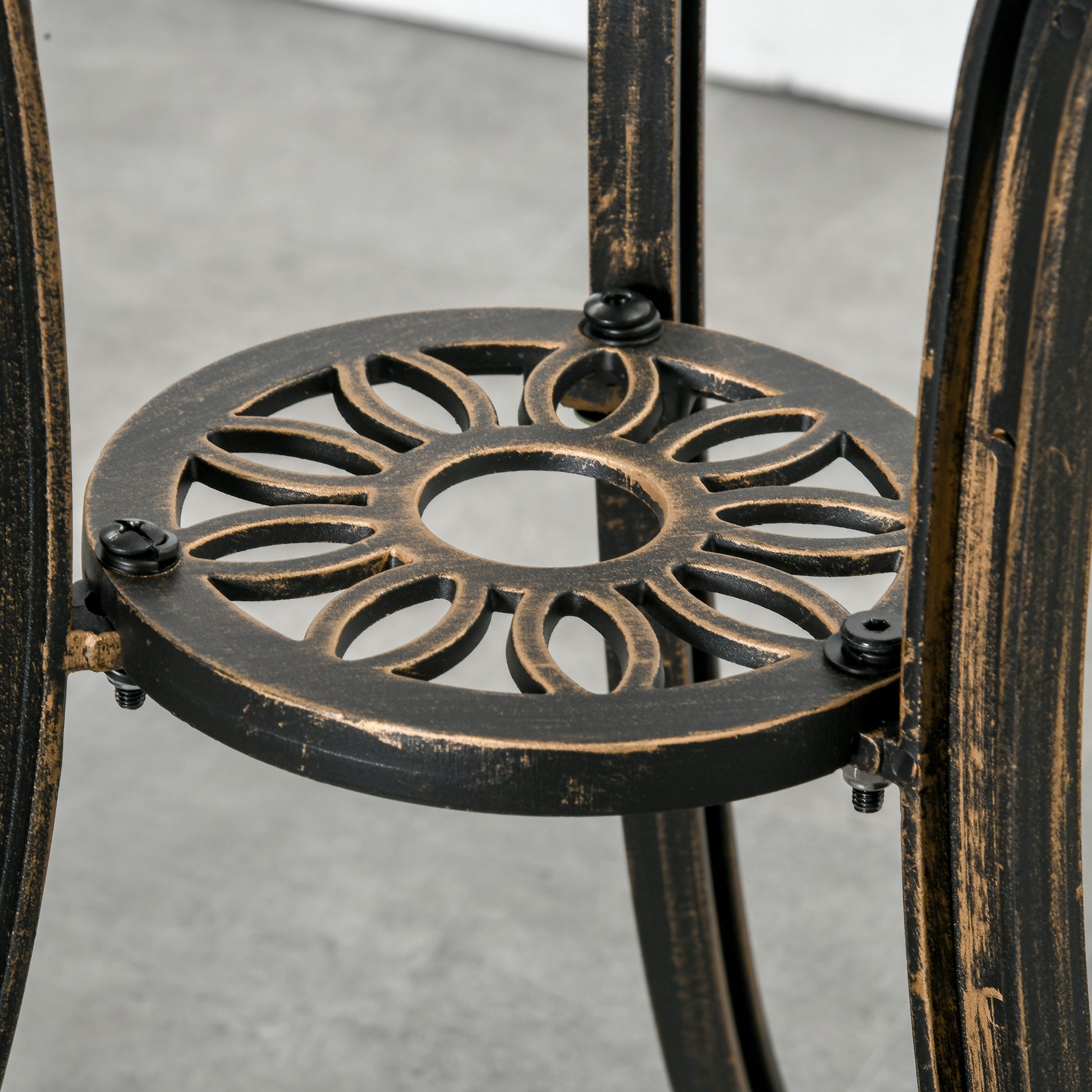Transform your garden into a haven of elegance with the Outsunny three-piece cast aluminum garden coffee set. Tailored for gardening enthusiasts, this exquisite bistro set combines durability with timeless beauty, effortlessly withstanding diverse weather conditions. The intricately designed chairs and matching table offer unparalleled comfort, making them perfect for leisurely afternoons spent savoring tea. Elevate your garden's aesthetic appeal while enjoying luxurious relaxation.