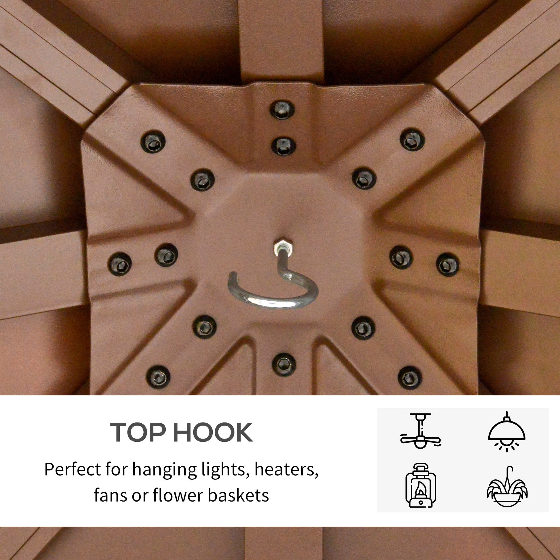 - Hook on the top of the ceiling for hanging a lamp