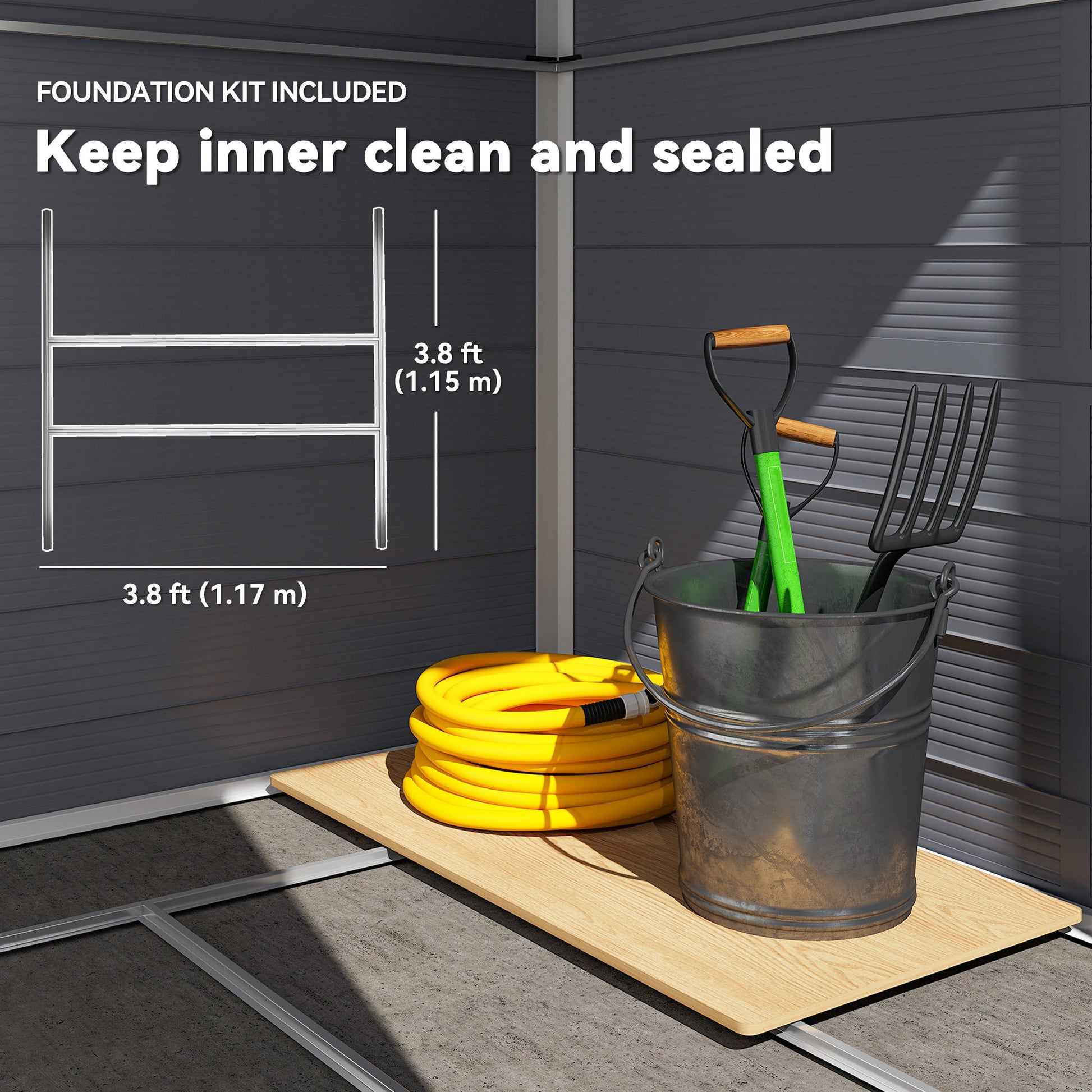 Outsunny 4.4ft x 6.2ft Aluminium Frame and Plastic Wall Shed, with Foundation - Grey
