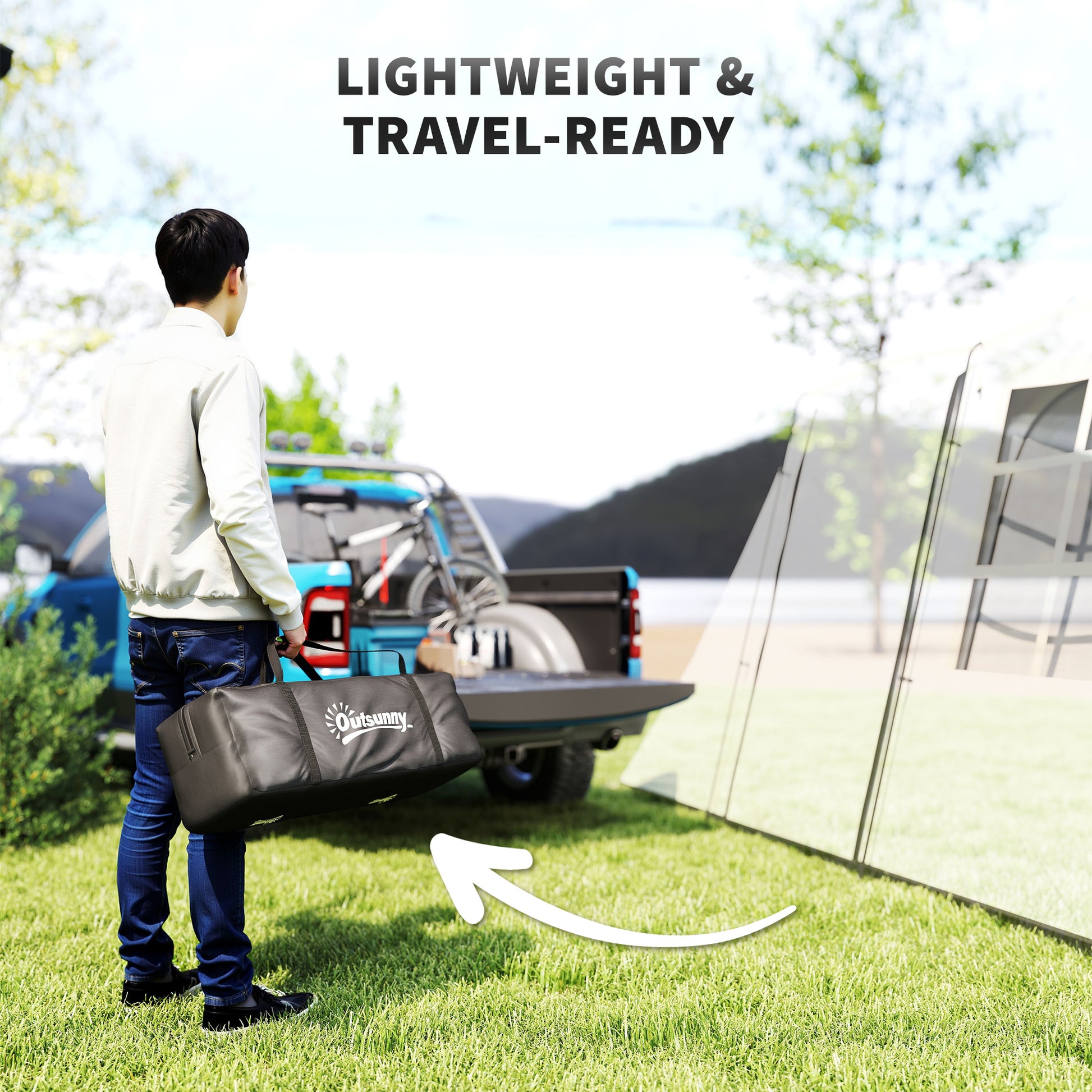 Discover the great outdoors in comfort with the Outsunny large tent. Designed for 3-4 sleepers and 6-8 loungers, this spacious tent features a bedroom, a large living area and a porch. Enjoy the convenience of a 3000mm waterproof outer layer and sewn-in groundsheet, ensuring you stay dry and comfortable. Great for family camping or a weekend hiking adventure.