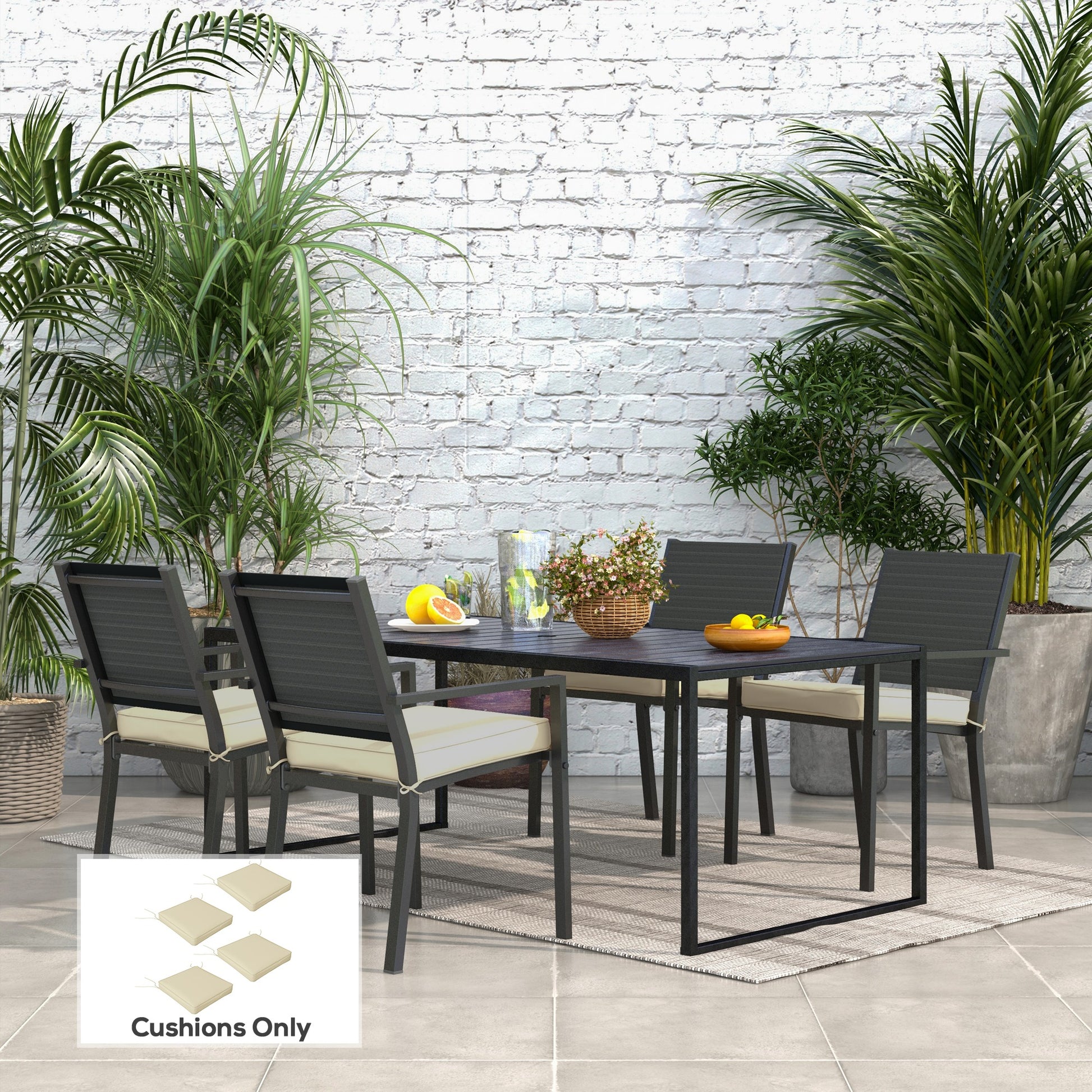 Outsunny 4-Piece Seat Cushions Pillow Replacement, Patio Chair Cushions Set with Ties for Indoor Outdoor, Beige