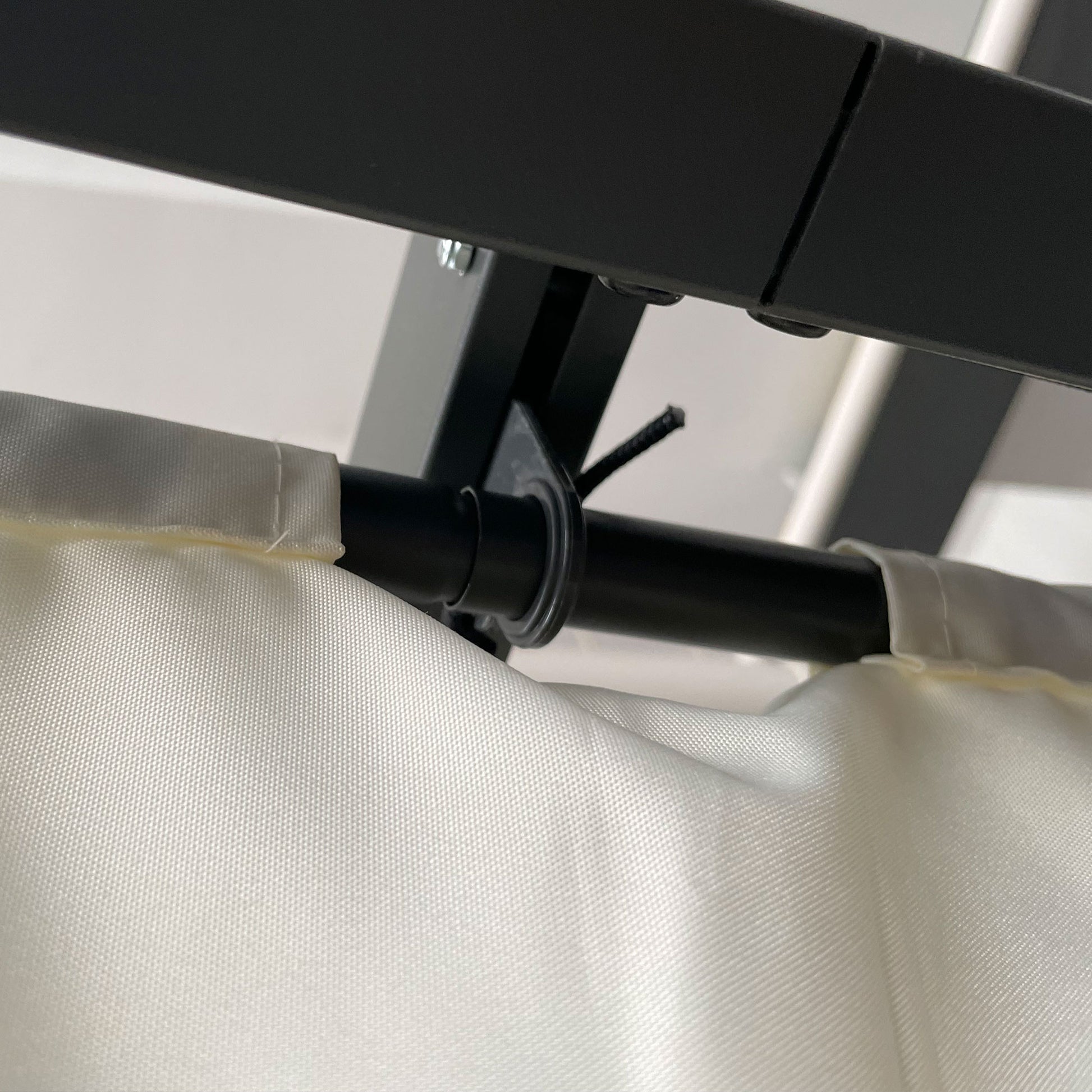 - Polyester canopy is retractable, slides to a position to keep you protected from the sun