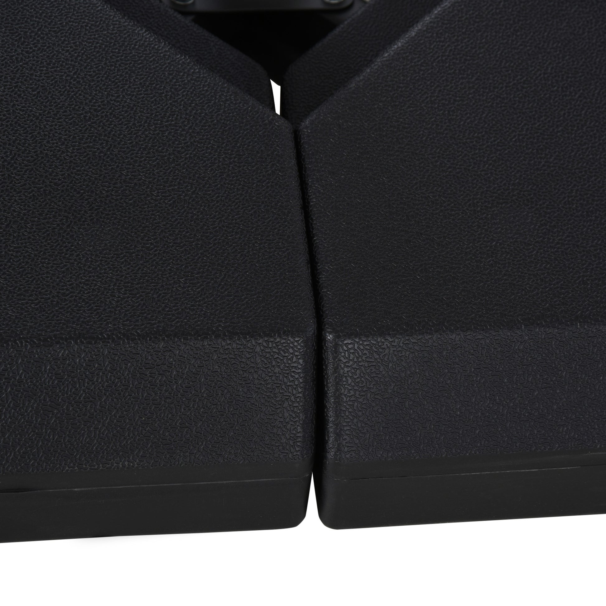 Keep your parasol held firmly in place with this four-piece weighted base from Outsunny. Made from strong HDPE plastic, it is comprised of four pieces which fit together on the supplied steel cross base, fitting parasol poles with a 48mm diameter. Each parts holds 15 litres of water or 18kg of sand, and is filled with the side sprout. Easy to carry when empty. Whether it's for the home or a commercial premises, this is the parasol base for you.