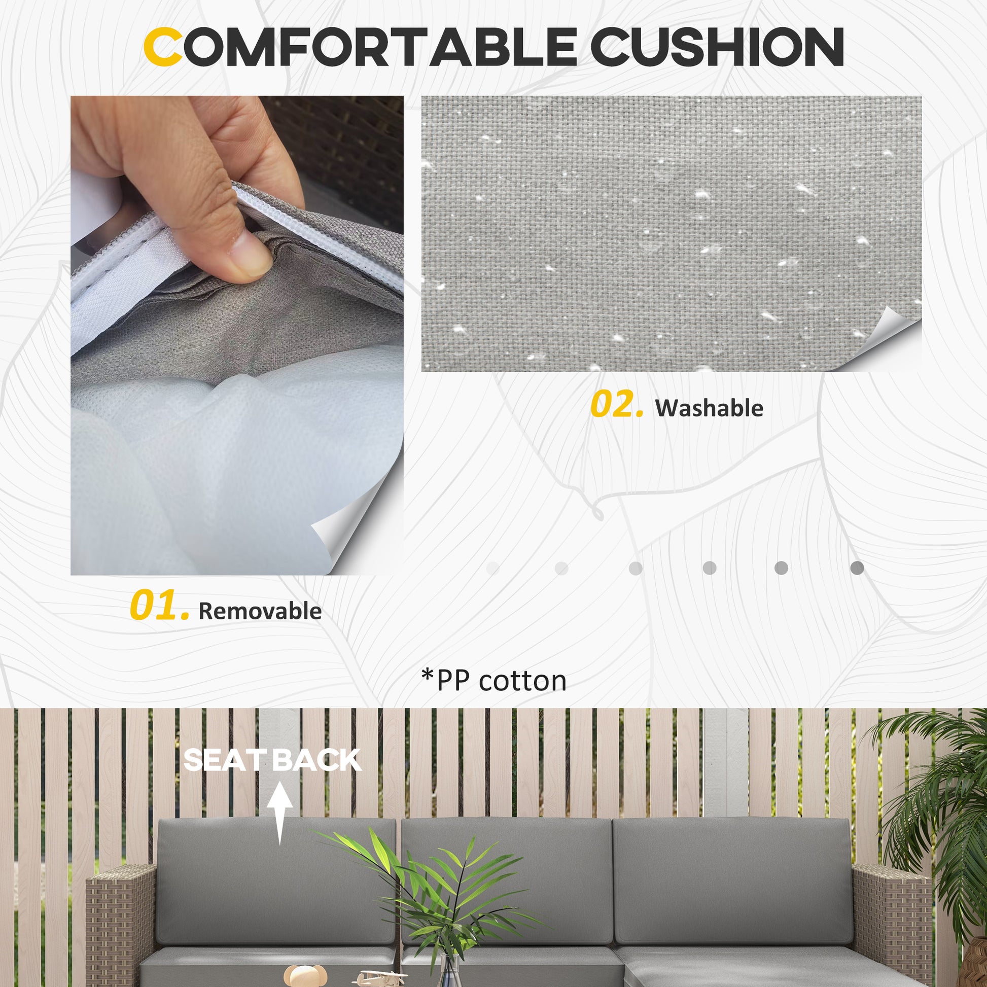 - PP cotton padded cushions for comfort, with washable covers