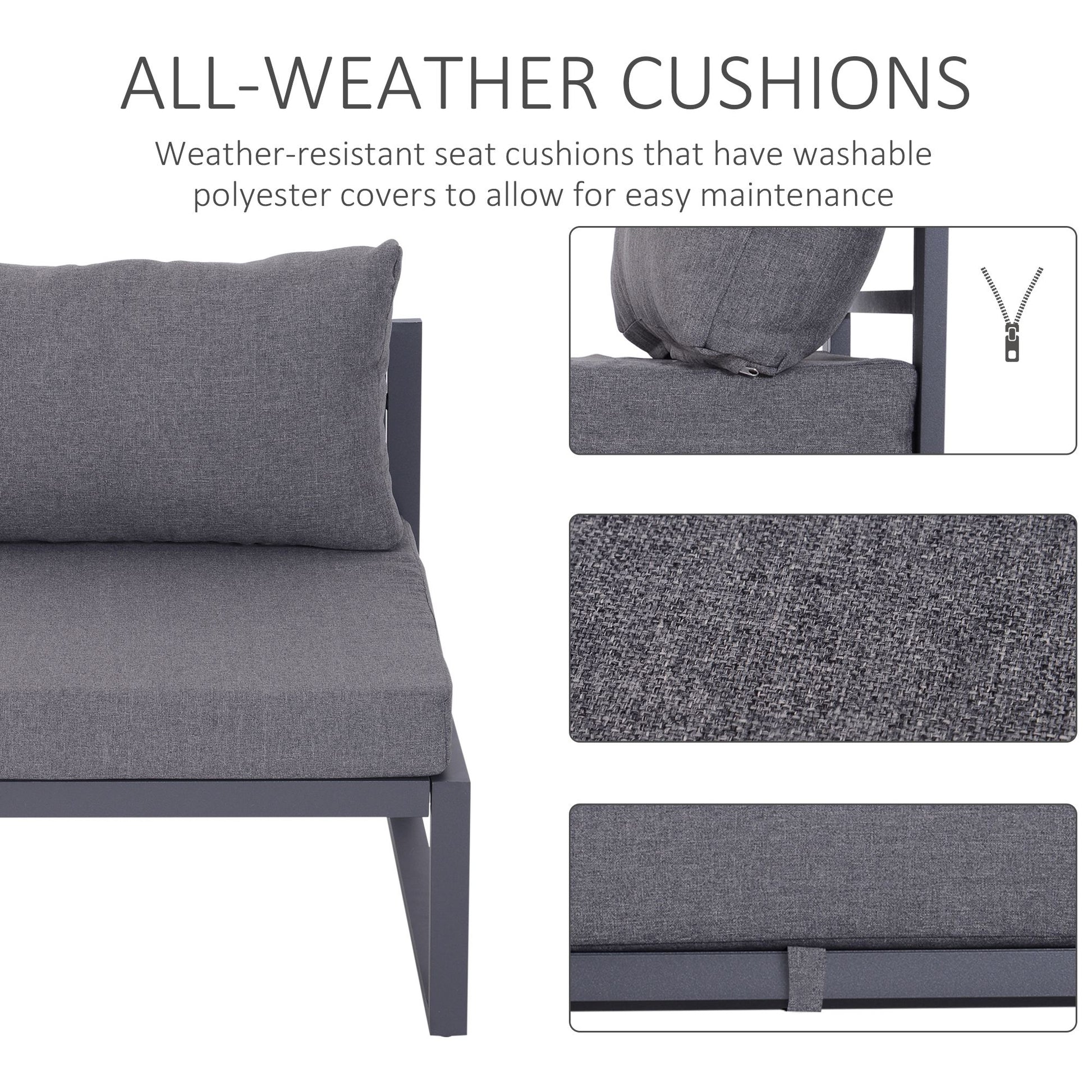 Outsunny 6 PCs Outdoor Indoor Sectional Sofa Set Thick Padded Cushions Aluminium Frame 5 Seaters 1 Coffee Table Footrest Grey