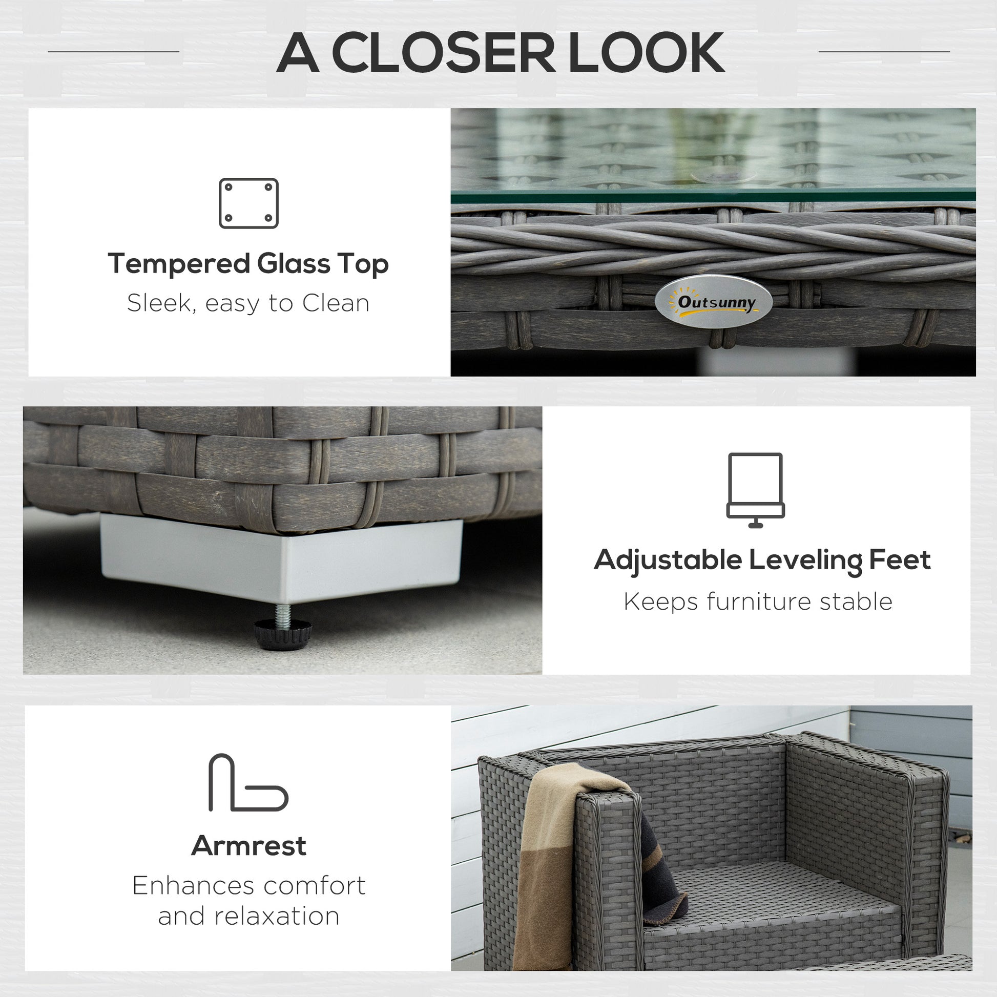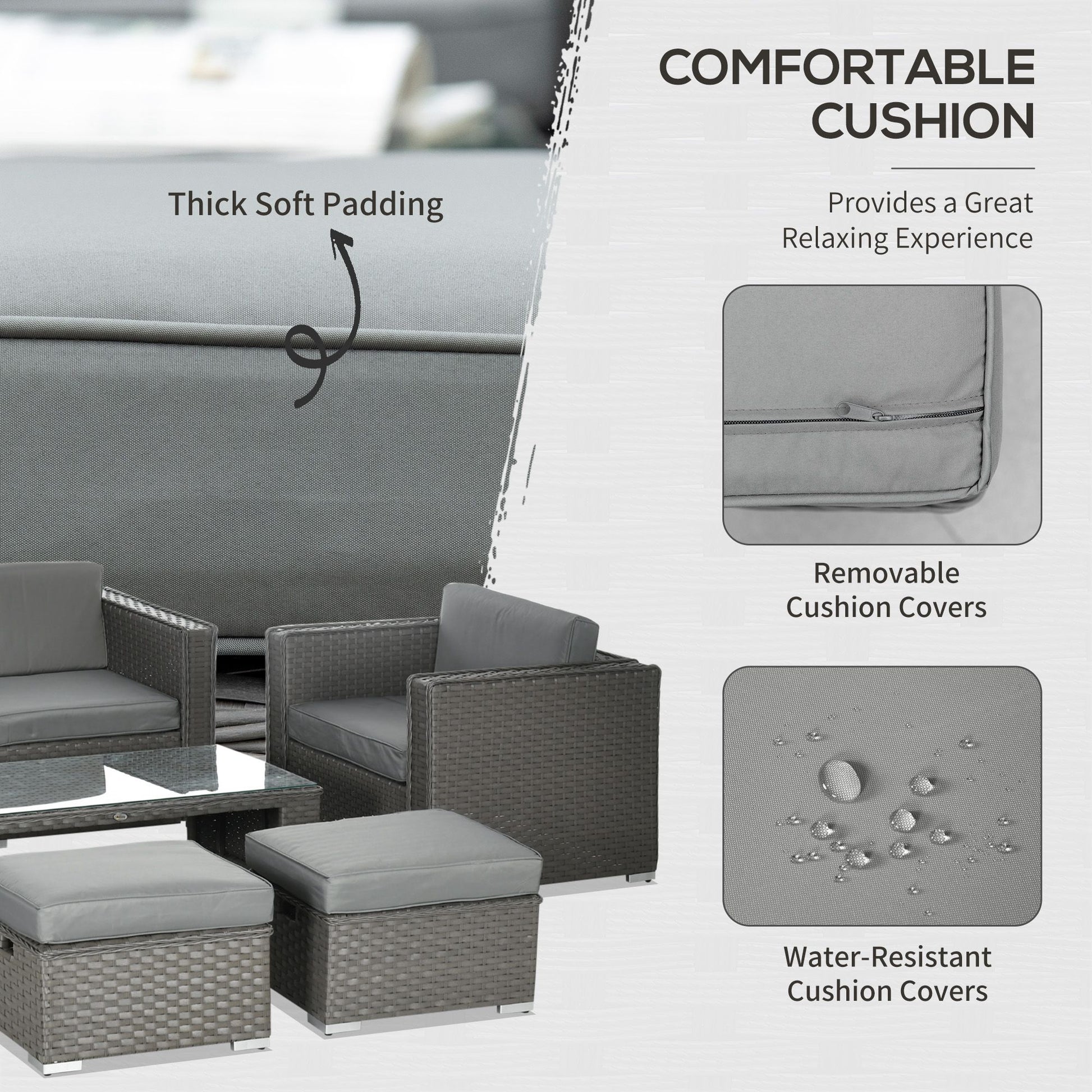 Outsunny 6PC Garden Rattan Sofa Set Bonzer Outdoor Furniture Patio Table Loveseat Stool Lounging Ottoman Aluminium Frame Wicker Weave Conservatory Grey