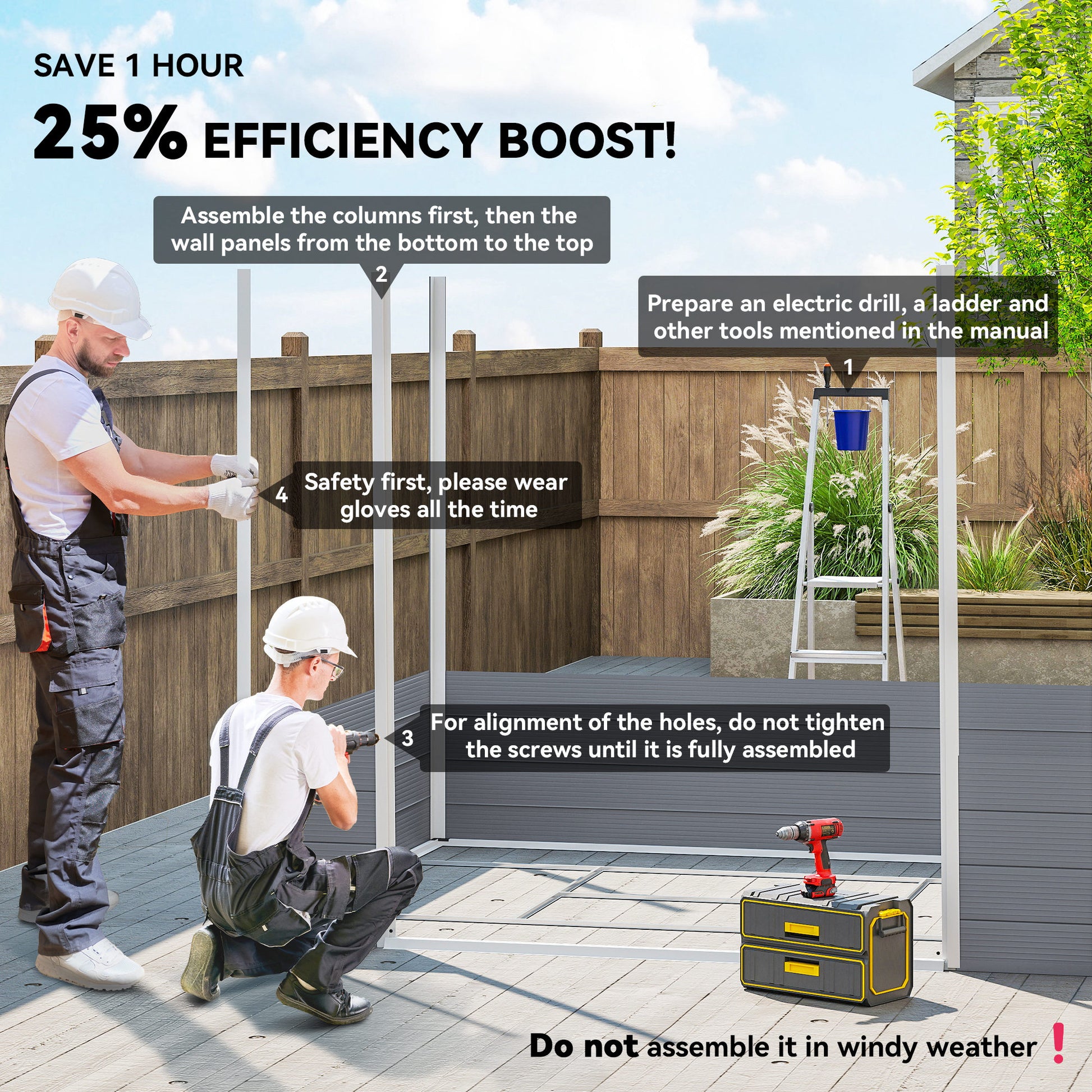 Outsunny 7.9ft x 6.2ft Aluminium Frame and Plastic Wall Shed, with Foundation - Grey