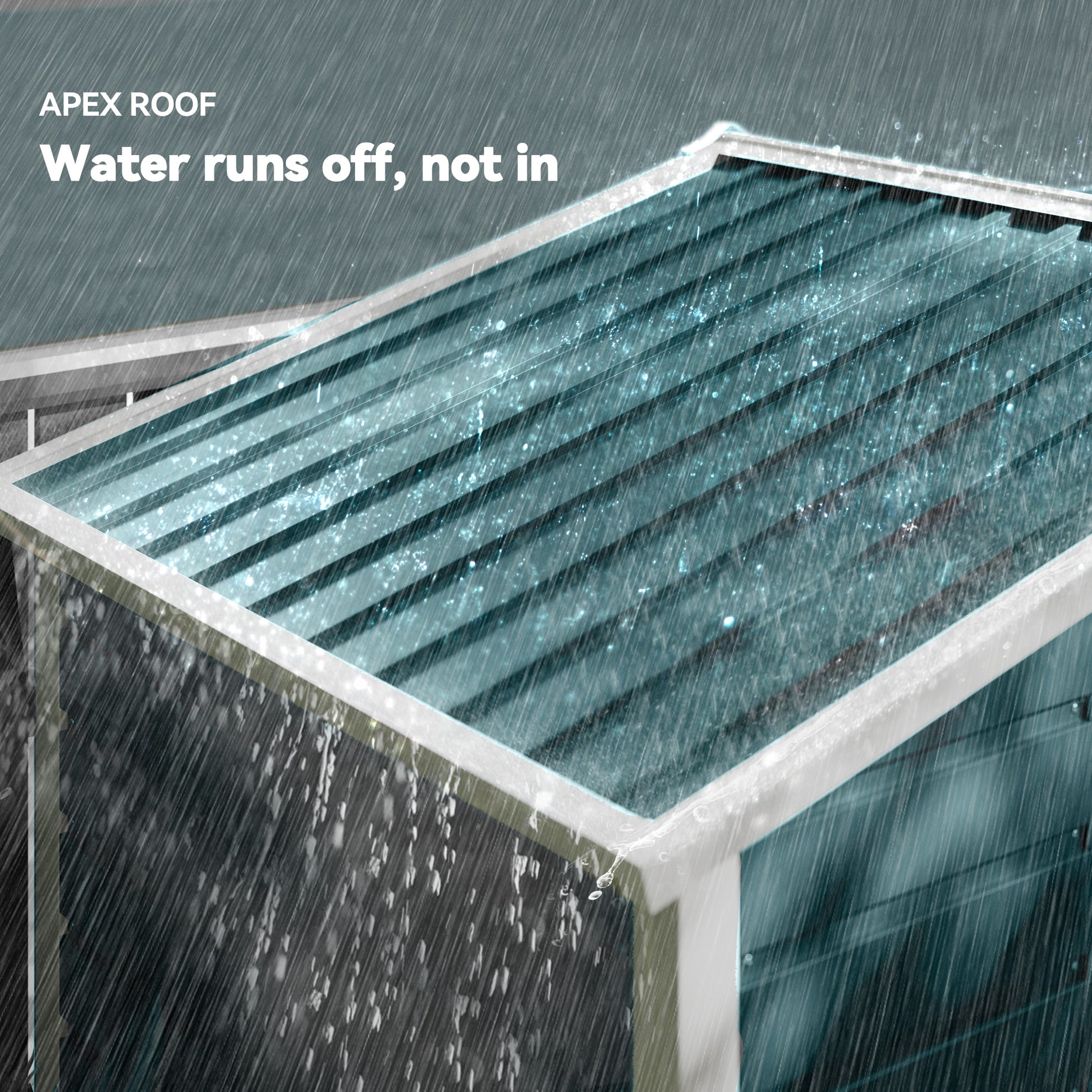 - Apex roof design prevents water and snow build-up