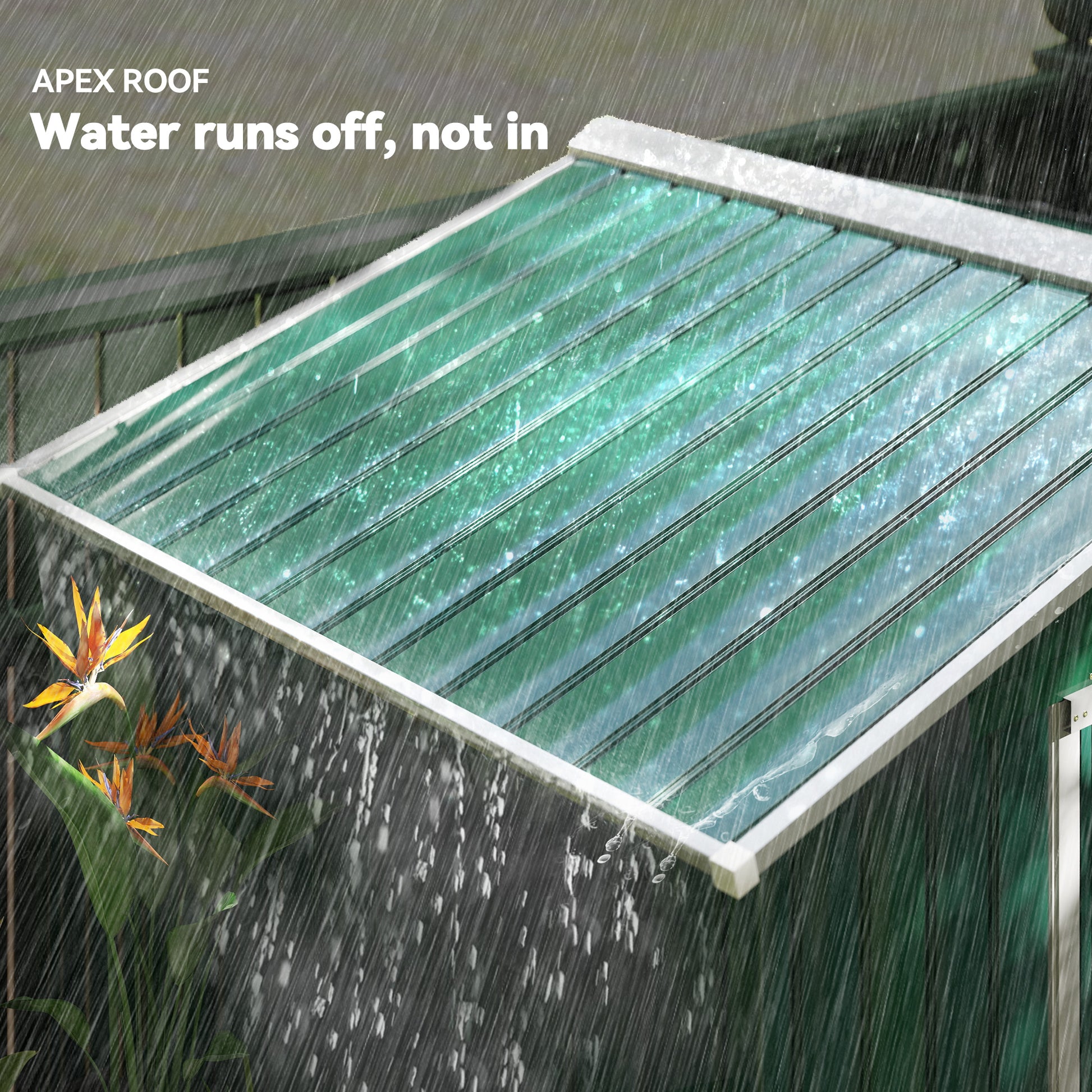 - Sloped roof helps prevent water build-up: prevents surface damage and rusting