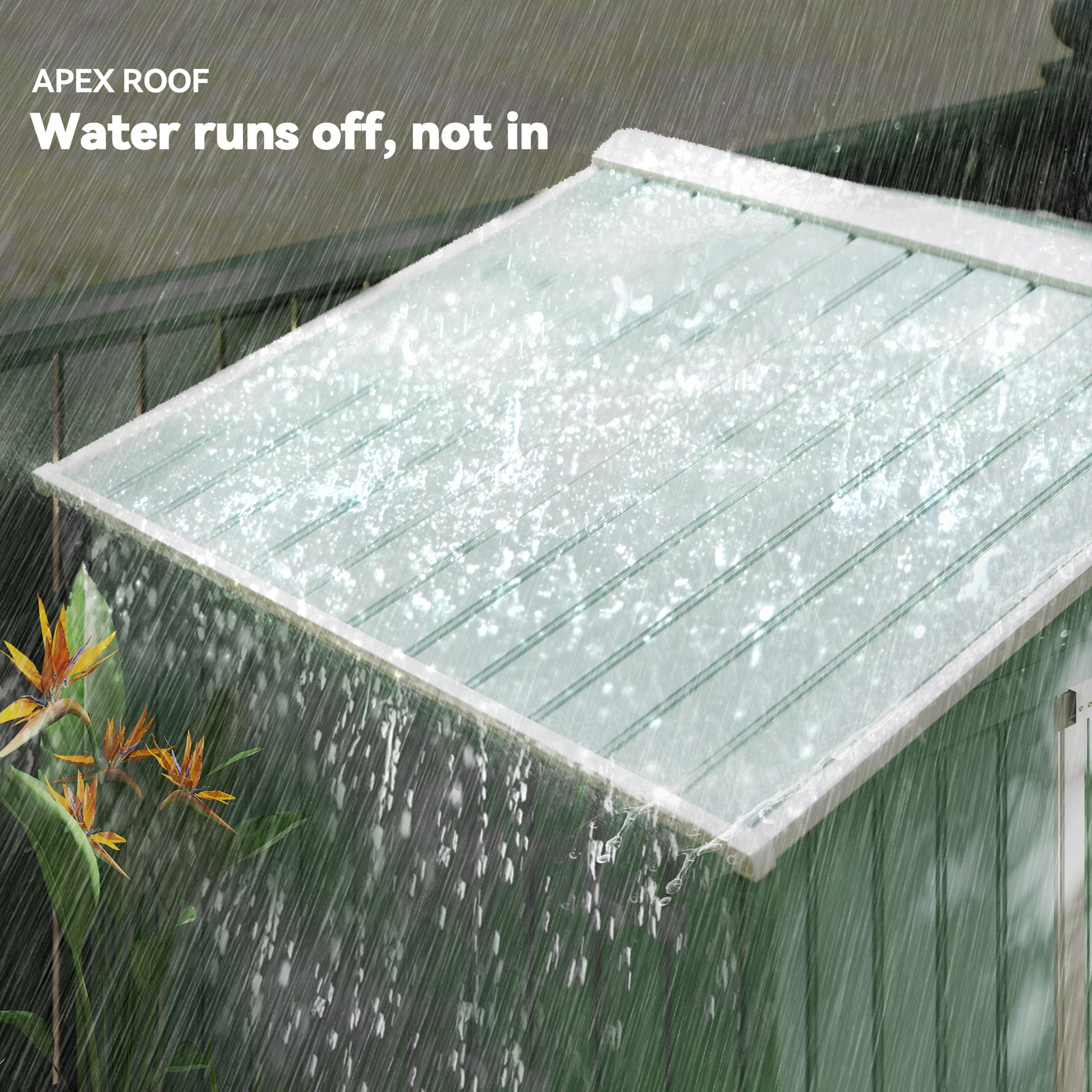 - Sloped roof helps prevent water build-up: prevents surface damage and rusting