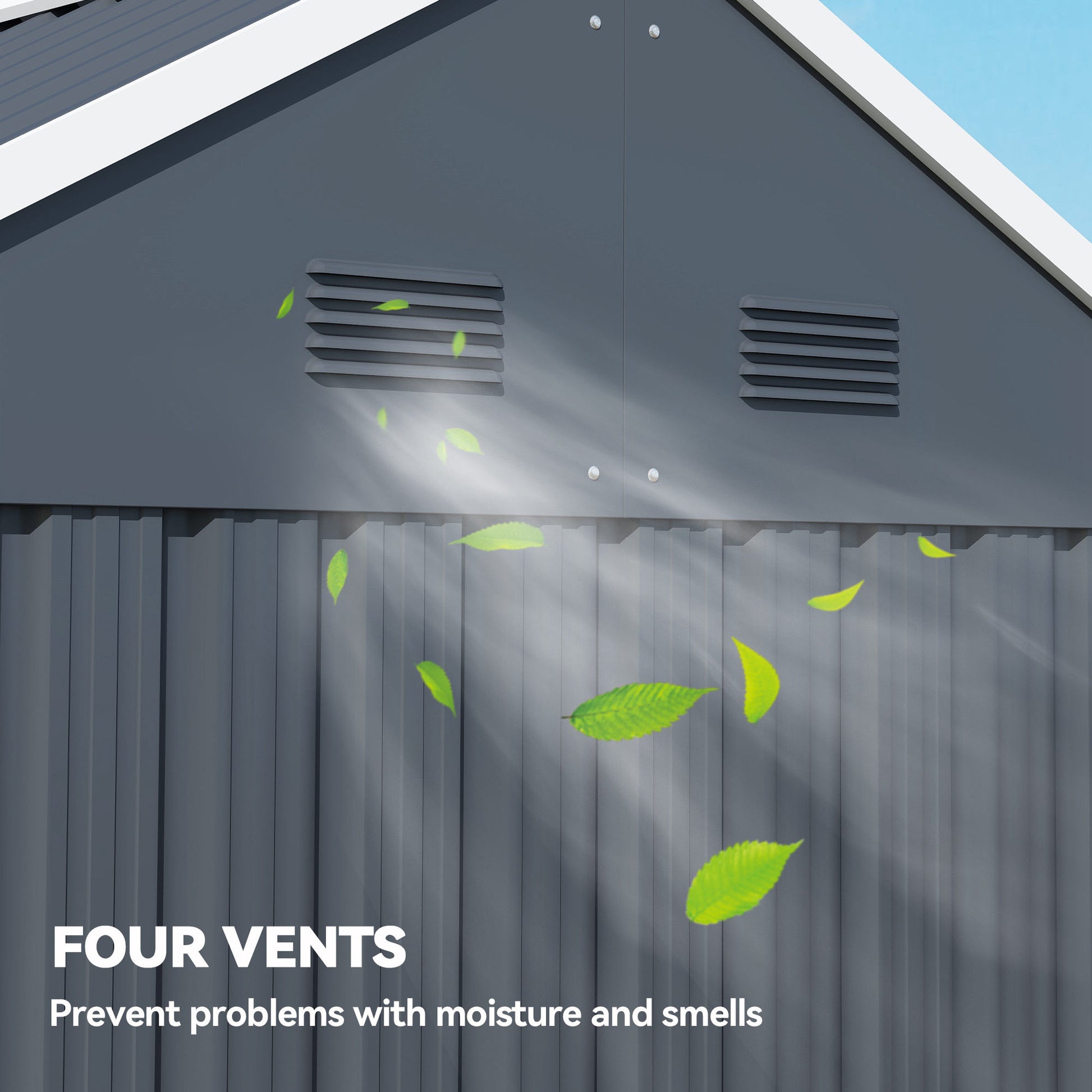 Outsunny 7 x 6ft Galvanised Garden Shed, with Latch - Dark Grey