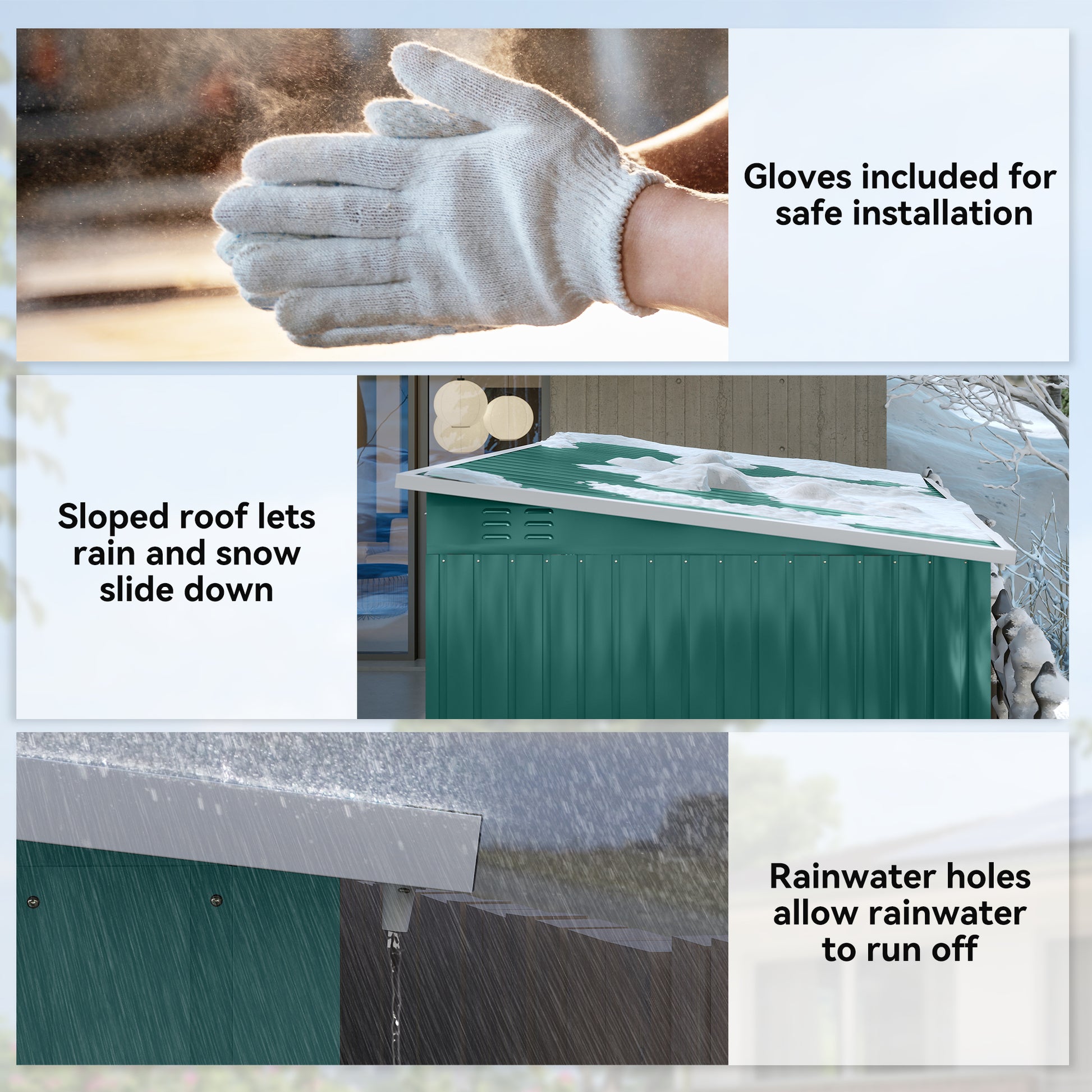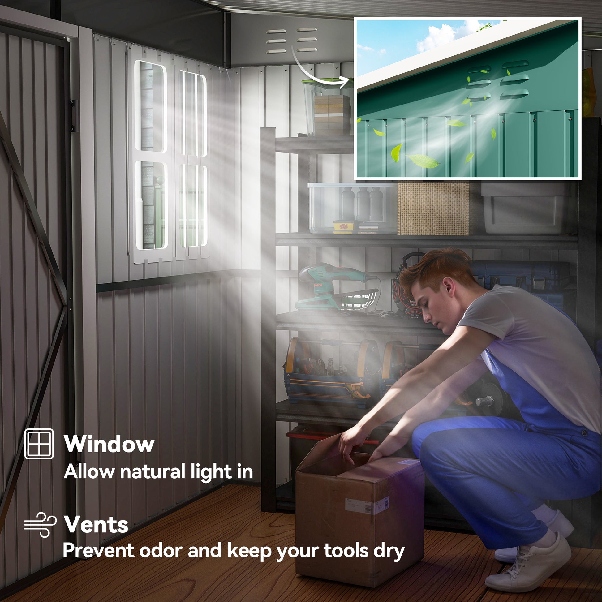 Outsunny 8.5 x 6ft Storage Shed Galvanised Steel Garden Shed, Metal Shed with Foundation Kit, Window, Lockable Wide Doors and Air Vents for Outdoor Patio, Green
