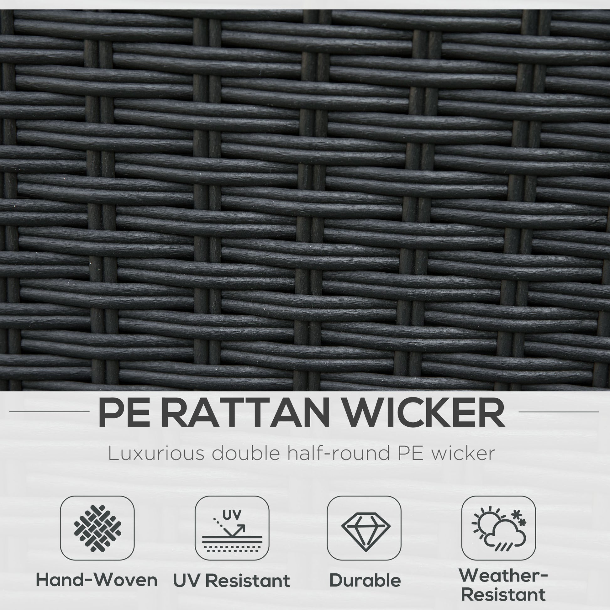 Take comfort to your garden with this eight-piece outdoor furniture from Outsunny. Powder coated steel frames make each piece strong and supportive, wrapped in plastic wicker for a stylish rattan look; also creates a protective shell. Set comes with two armless chairs, two footstools and two square tables - seats up to six people. Compact design: footstools fit under the tables and armless chairs fit into the corner chairs.