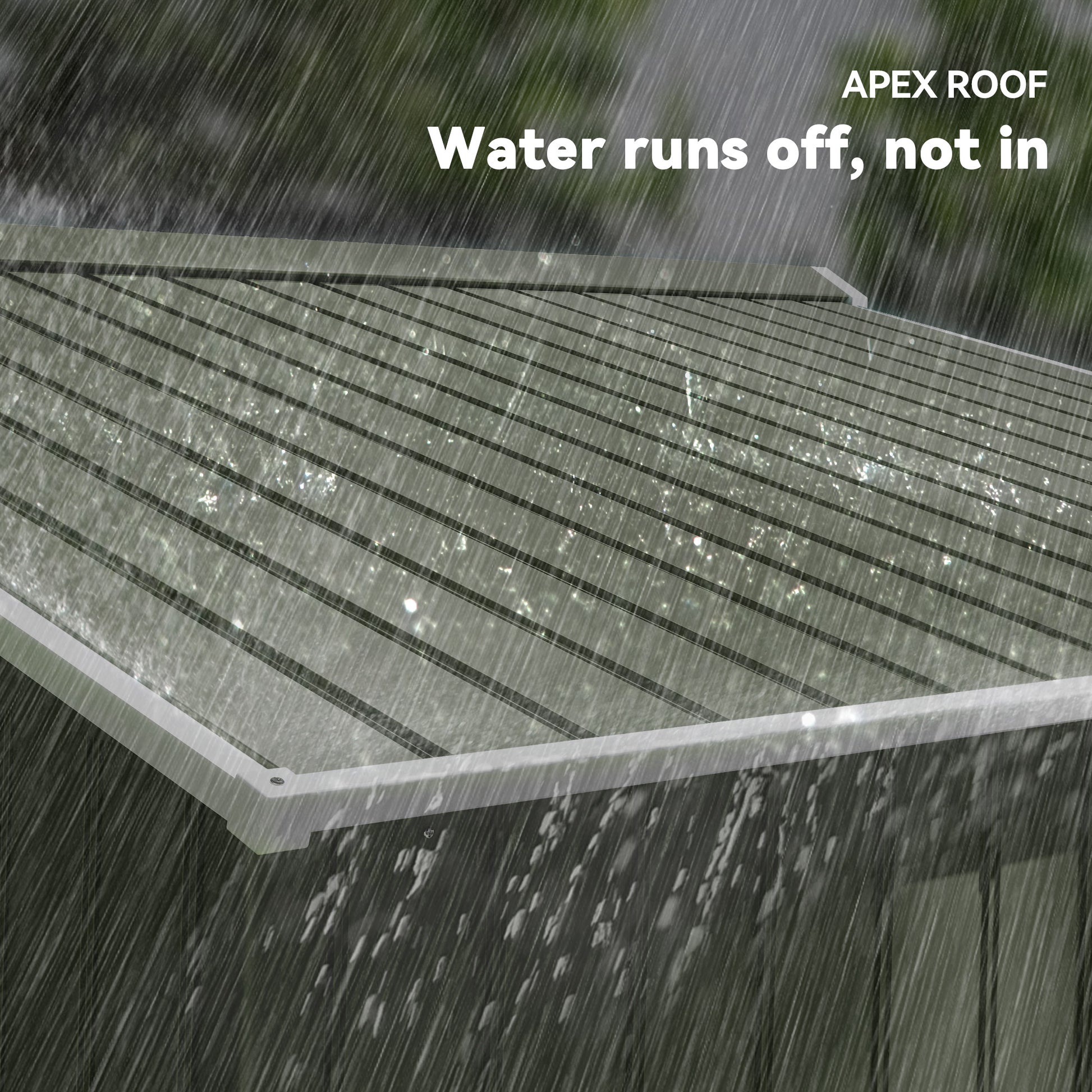 - Sloped roof helps prevent water build-up: prevents surface damage and rusting