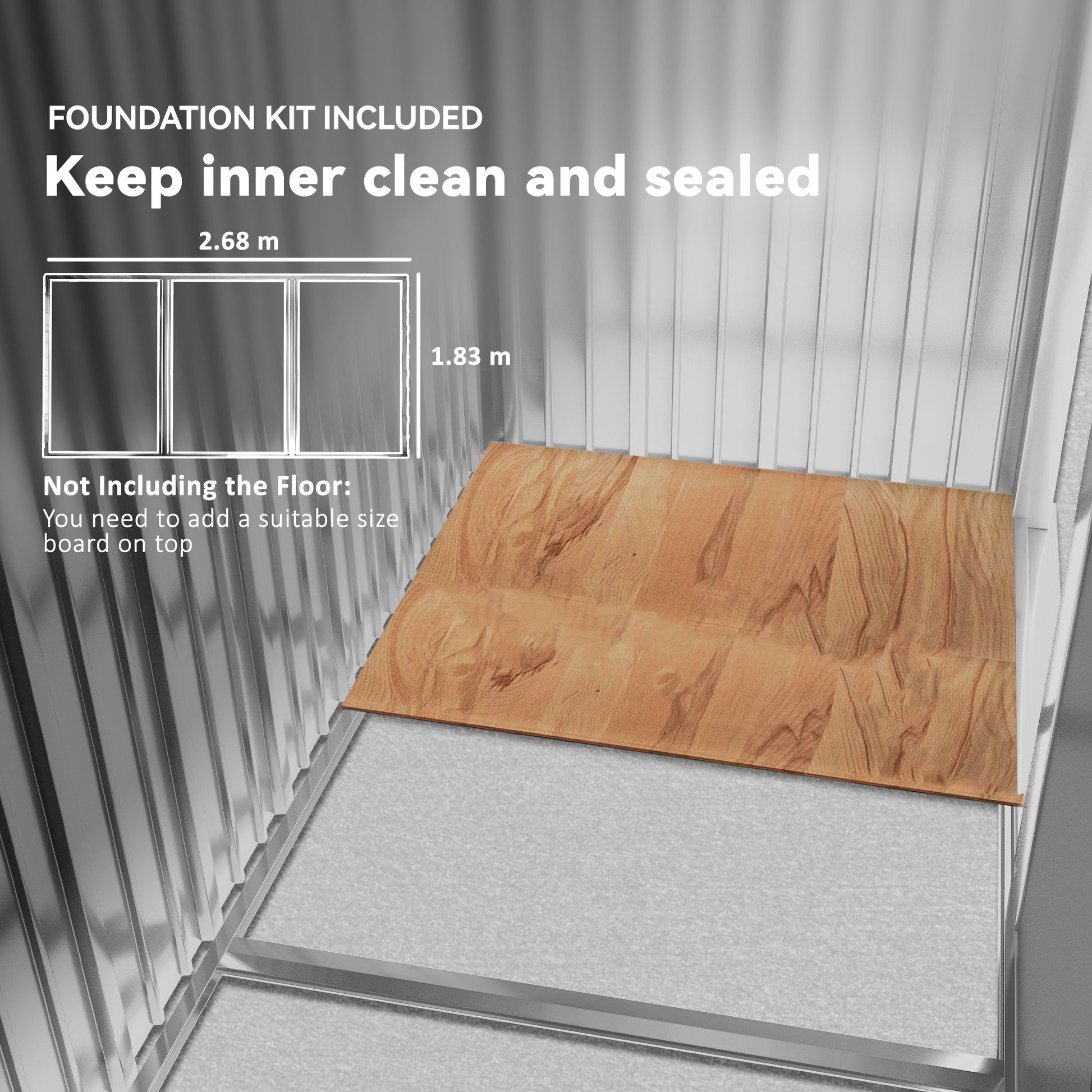 Outsunny 9 x 6ft Steel Garden Shed, Outdoor Storage Tool House with Vents, Foundation and Lockable Double Doors, Brown