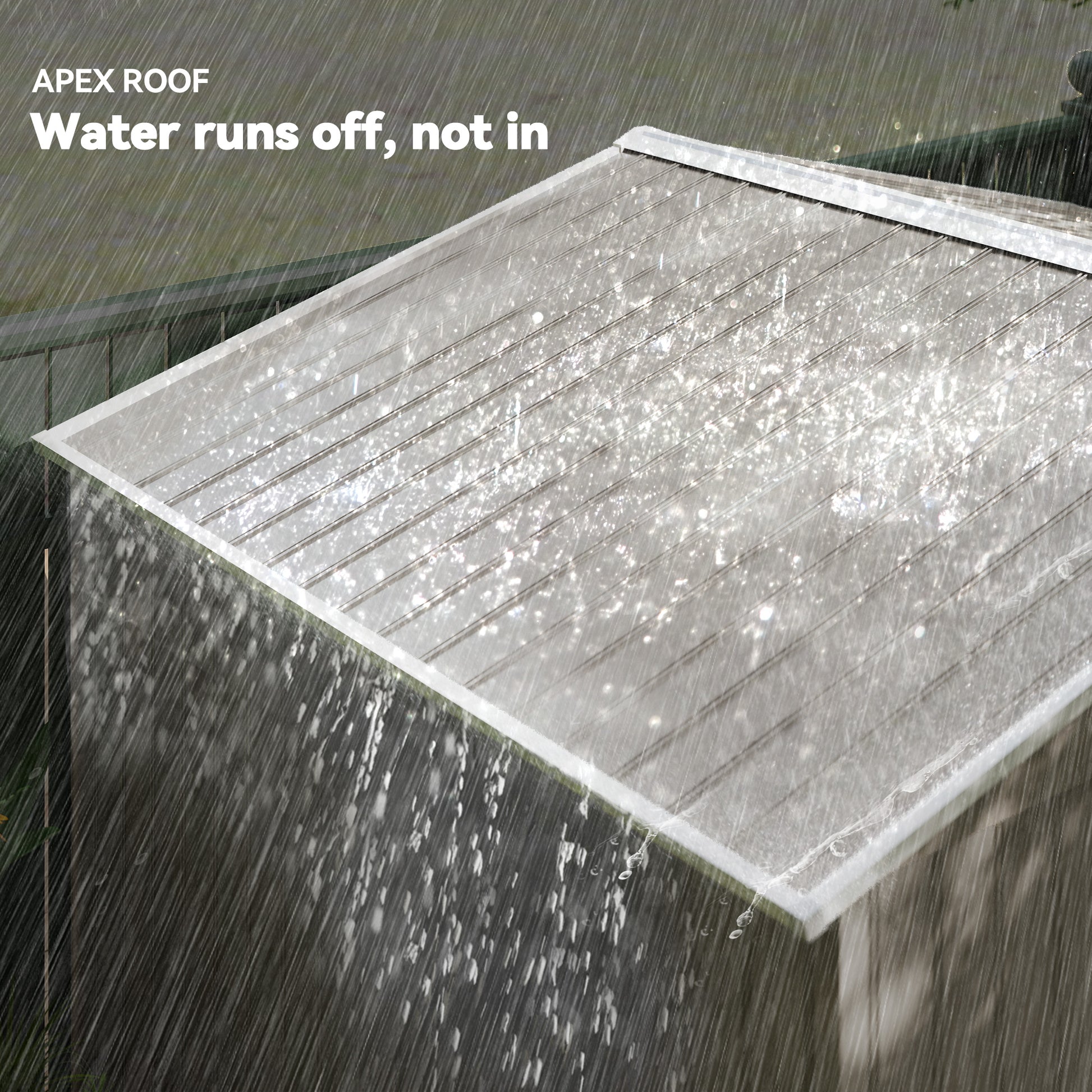 - Sloped roof helps prevent water build-up: prevents surface damage and rusting