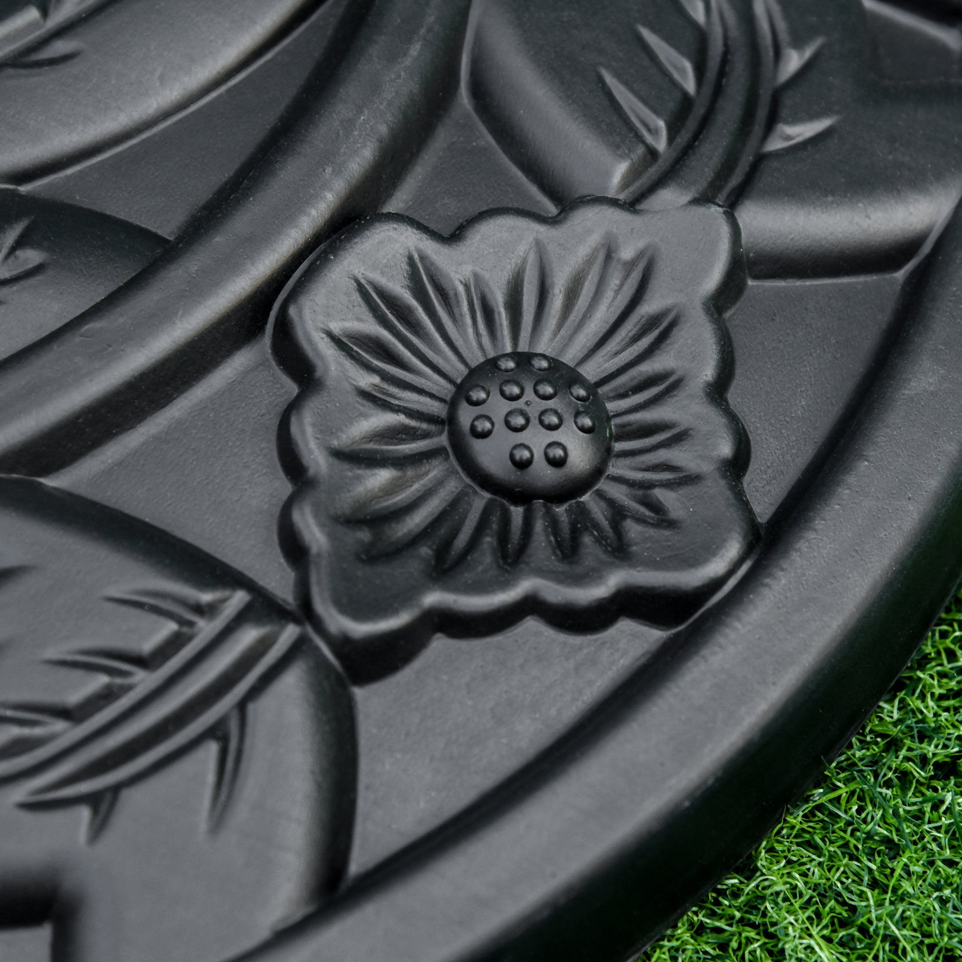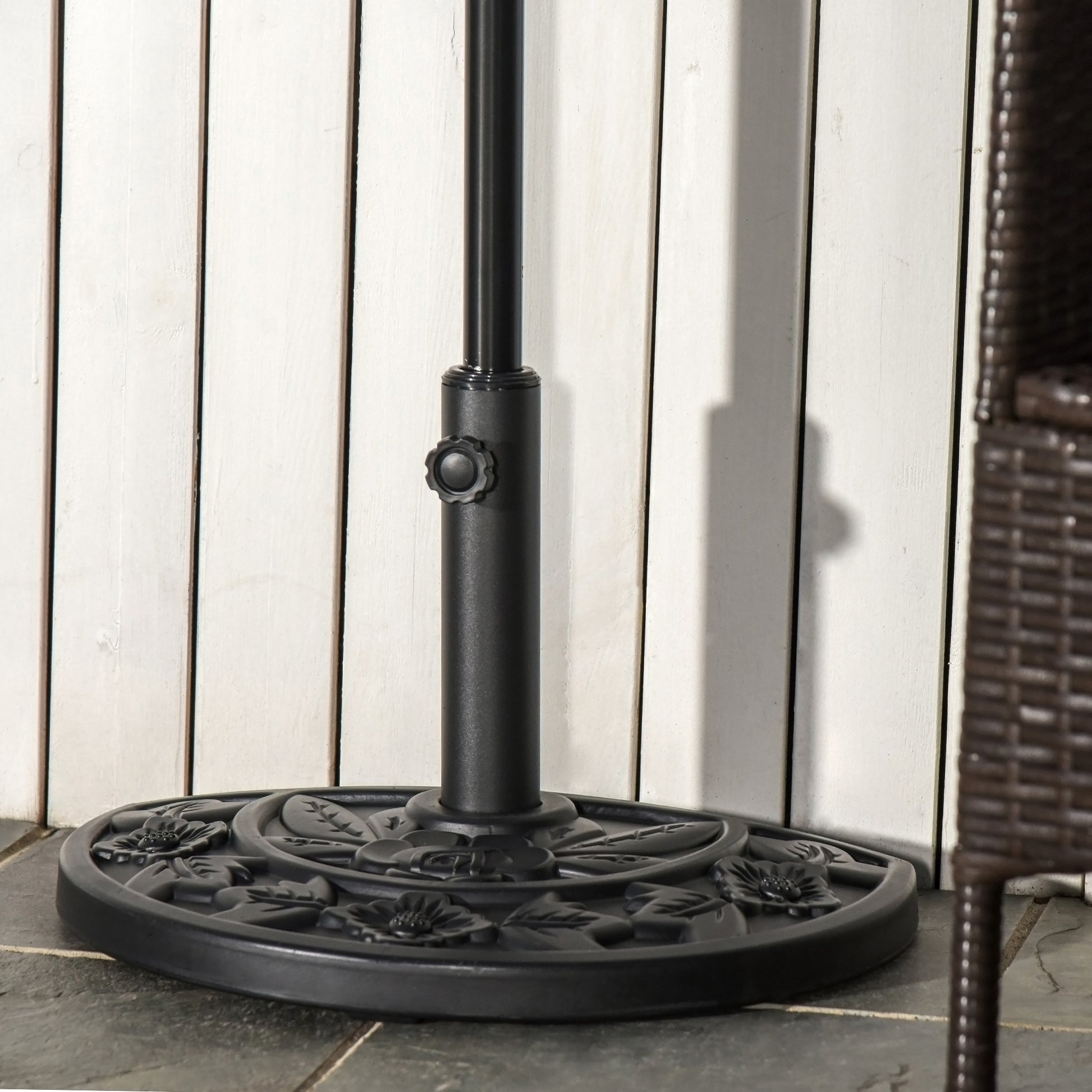 Incorporate elegance into your garden furniture with this half parasol umbrella base from Outsunny. Made from a blend of HDPE, cement and metal and weighing 9kg, it can withstand heavy rain and wind conditions, making it suitable for use all year round. In a versatile black hue, it features a top engraved with a delicate and beautiful flower design and it is finished with a tightening screw to hold the parasol pole securely in place all day long. It’s the perfect combination of beauty and functionality.