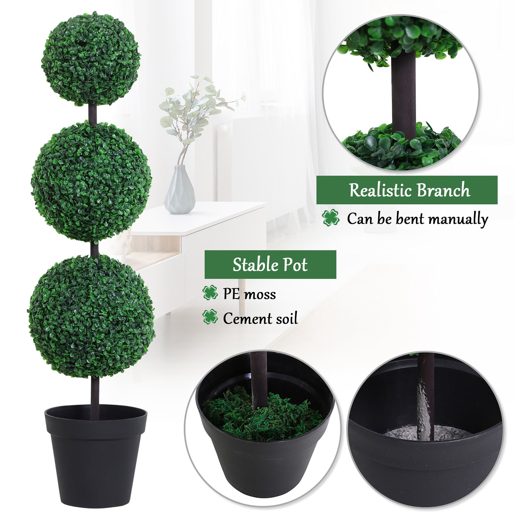 Breathe a new lease of life into your home with this potted plant from Outsunny. Sold in a set of two, each faux plant is presented in a tall, triple ball design for a unique and stand-out design that instantly brightens up your surroundings. Filled with cement each black pot keeps the indoor plant upright, with it delivered fully assembled to allow you to place it where you want straight away. The fake plant is an easy way to inject greenery into your home with no upkeep required.