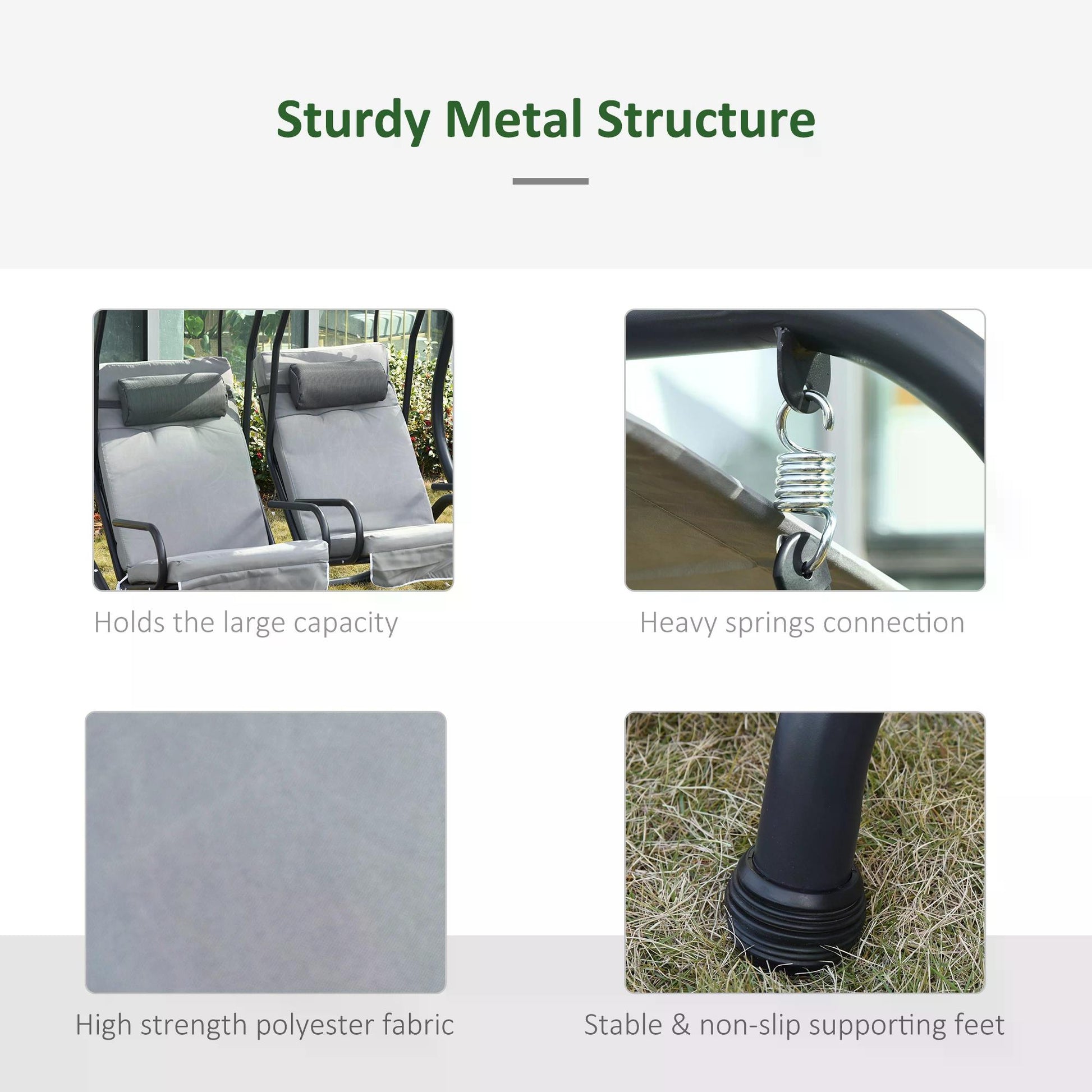 Double the outdoor fun with this two-seat garden swing with canopy from Outsunny. Both swing seats for adults seats come with a cup holder so you can enjoy your favorite drinking whilst soaking up the sun. The curved steel frame is durable and sturdy, with a large base so it keeps balanced. You'll cherish your summer days even more now with this garden swings for adults.