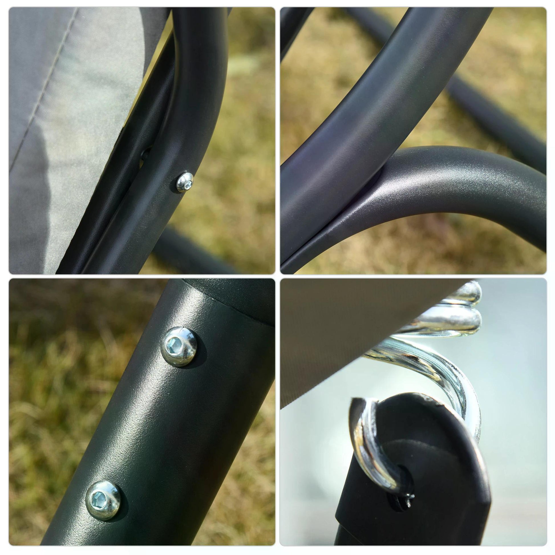 - Powder coated steel frame is tough and durable