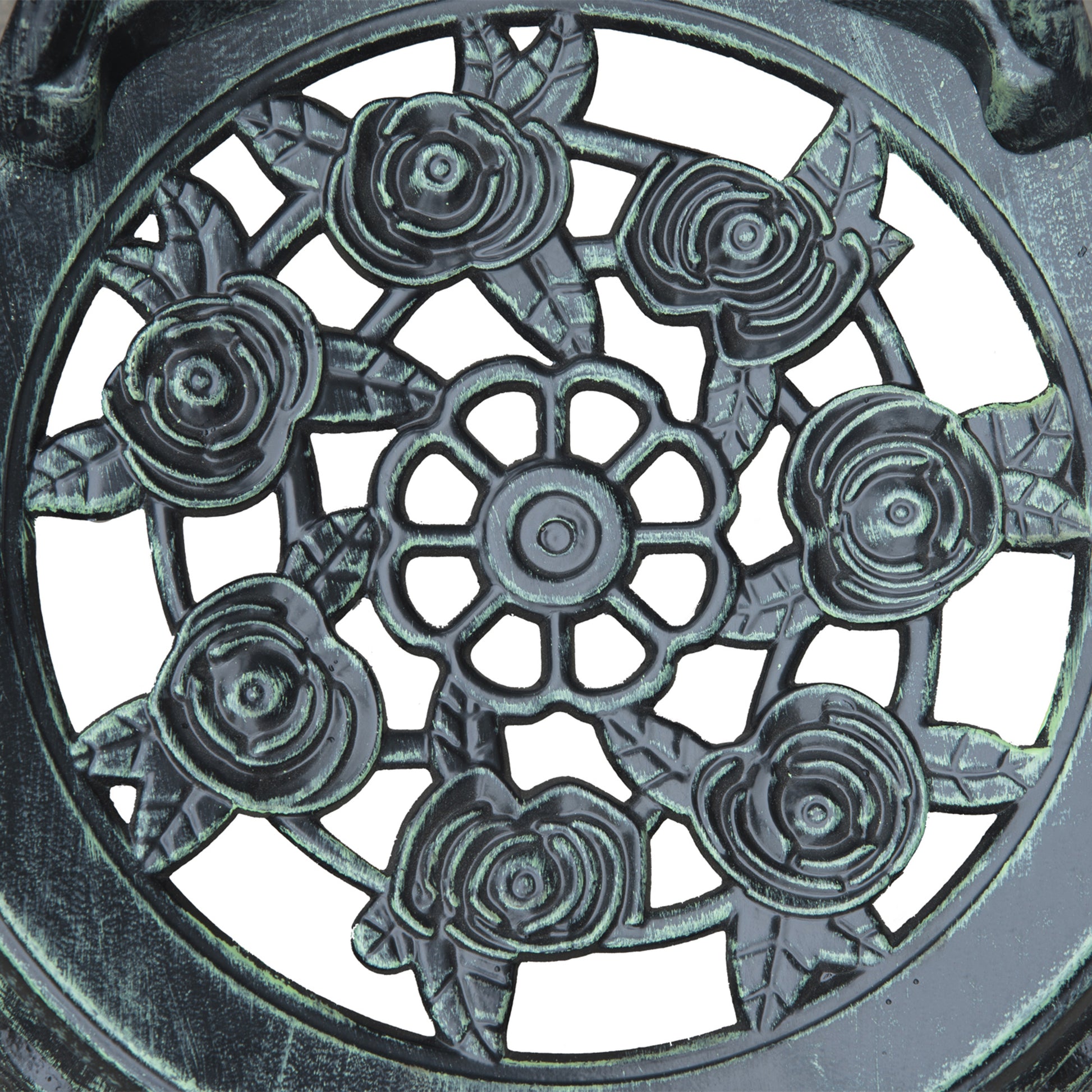 The bistro sets for 2 for garden will be a great addition to any patio area with its elegantly antique design. It is made from sturdy rust free cast iron and cast aluminum and molded into an antique green look. The legs of the table and two chairs are made of sturdy iron, which provides a stable place to rest. Whether in your backyard, patio, deck or even your restaurant outdoor dining space, you'll enjoy these garden bistro sets for years to come.