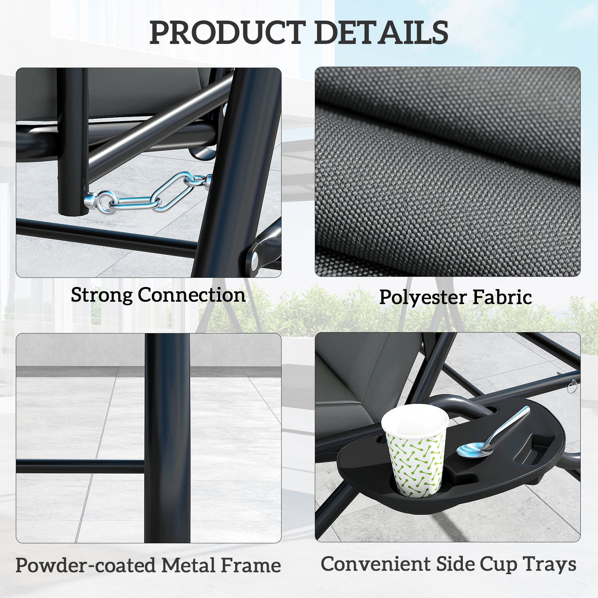 Relax in style with this Outsunny convertible garden swing seat bed. From a three-seater bench into a spacious bed, you relax the way you want. It comes with a 90° adjustable canopy, which protects up to UPF30+ - keep safely shaded all day long. It's complete with two handy side cup trays to have drinks within easy reach.