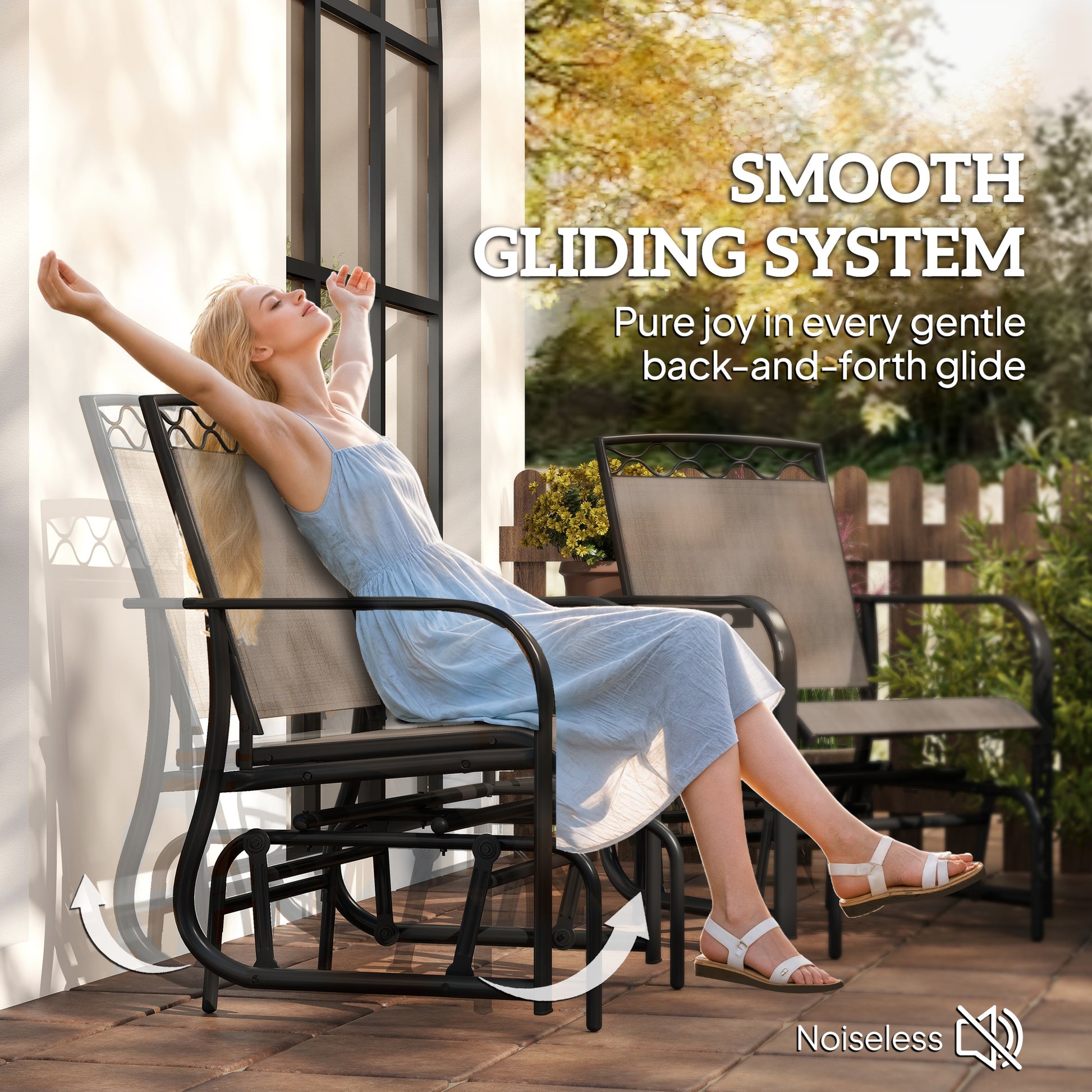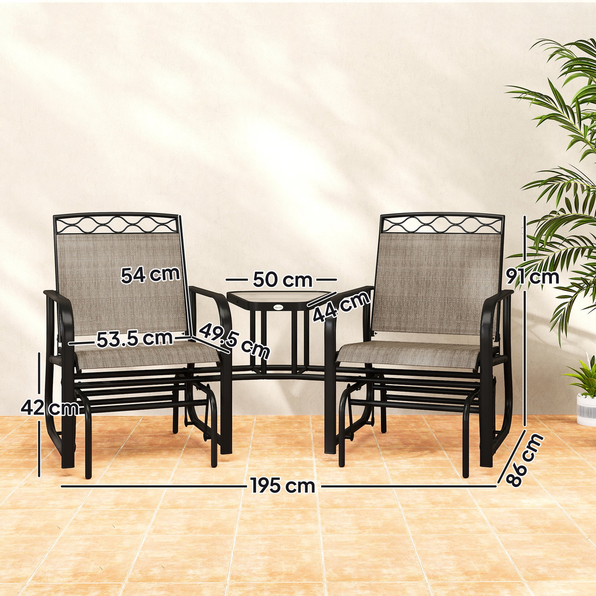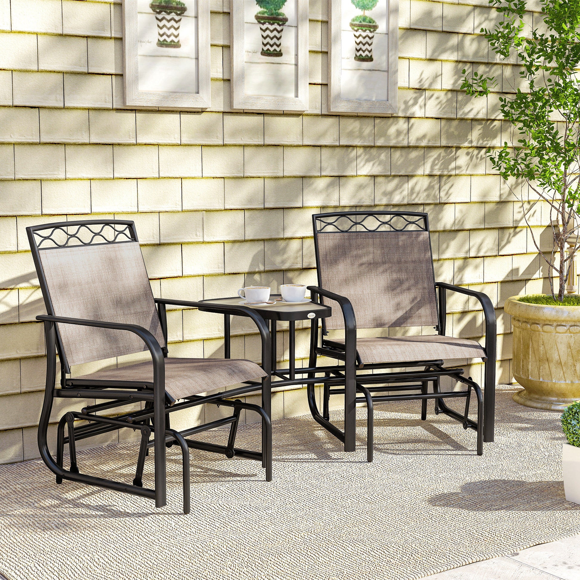Outsunny Double Outdoor Glider Chair, 2 Seater Patio Rocking Chairs, Swing Bench with Tempered Glass Table, Breathable Mesh Fabric for Backyard, Garden, Porch, Brown