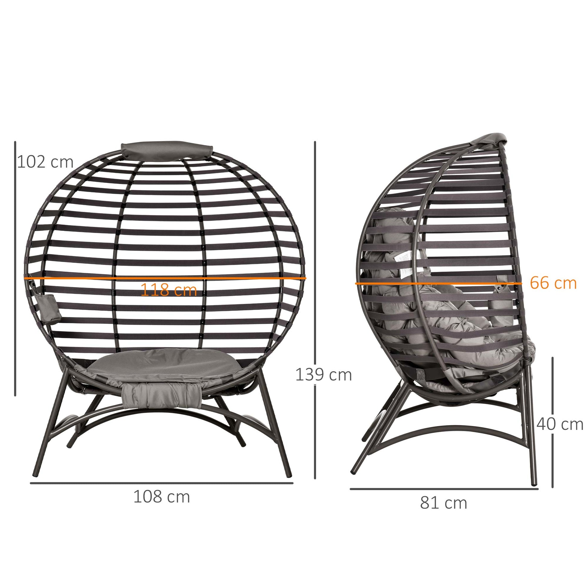 Every outdoor spot needs an egg chair - why not complete yours with double the style: go for this single-seater piece from Outsunny. The large, curved design means you can fall back into it to hideaway, fitted with the large and plush cushion for lots of comfort. The frame is made from single parts: the long metal lines for full support, with fabric panels in-between so it can be folded to 1/4 extended size: easy to carry and store. Comes completes on a four-legged base for full support.