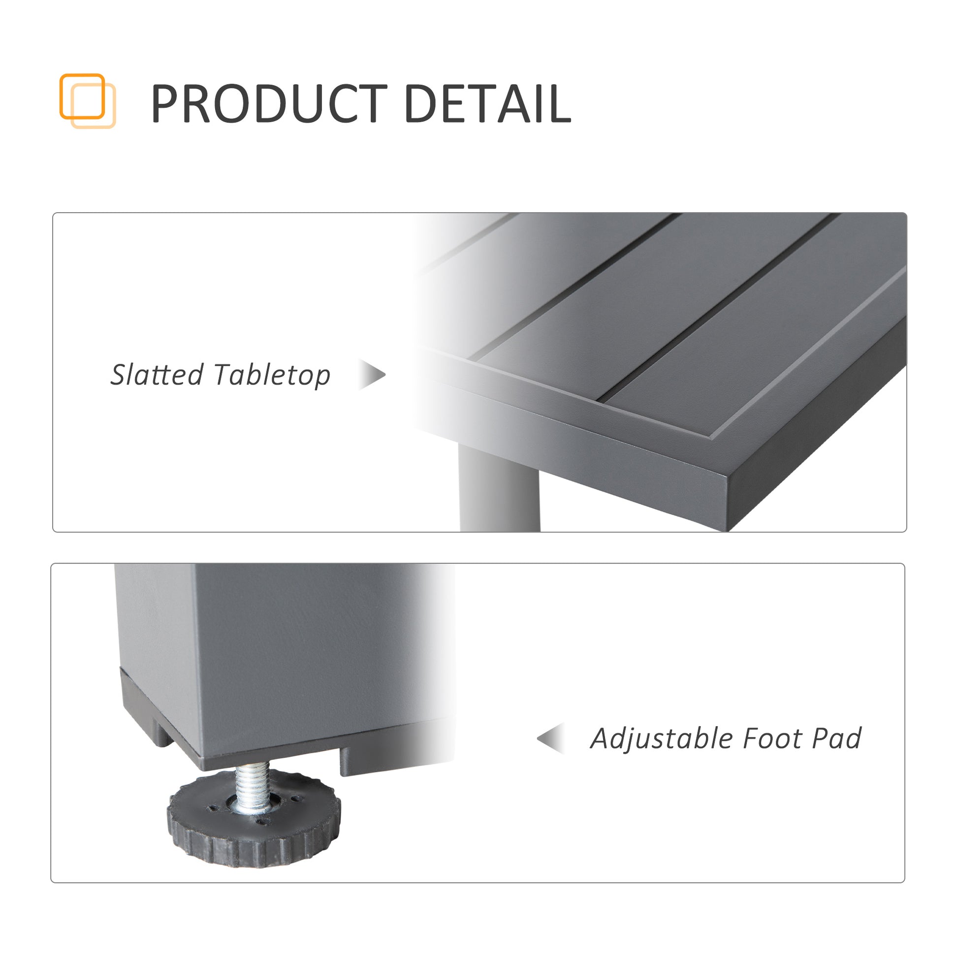 - Slatted table top avoids water accumulation