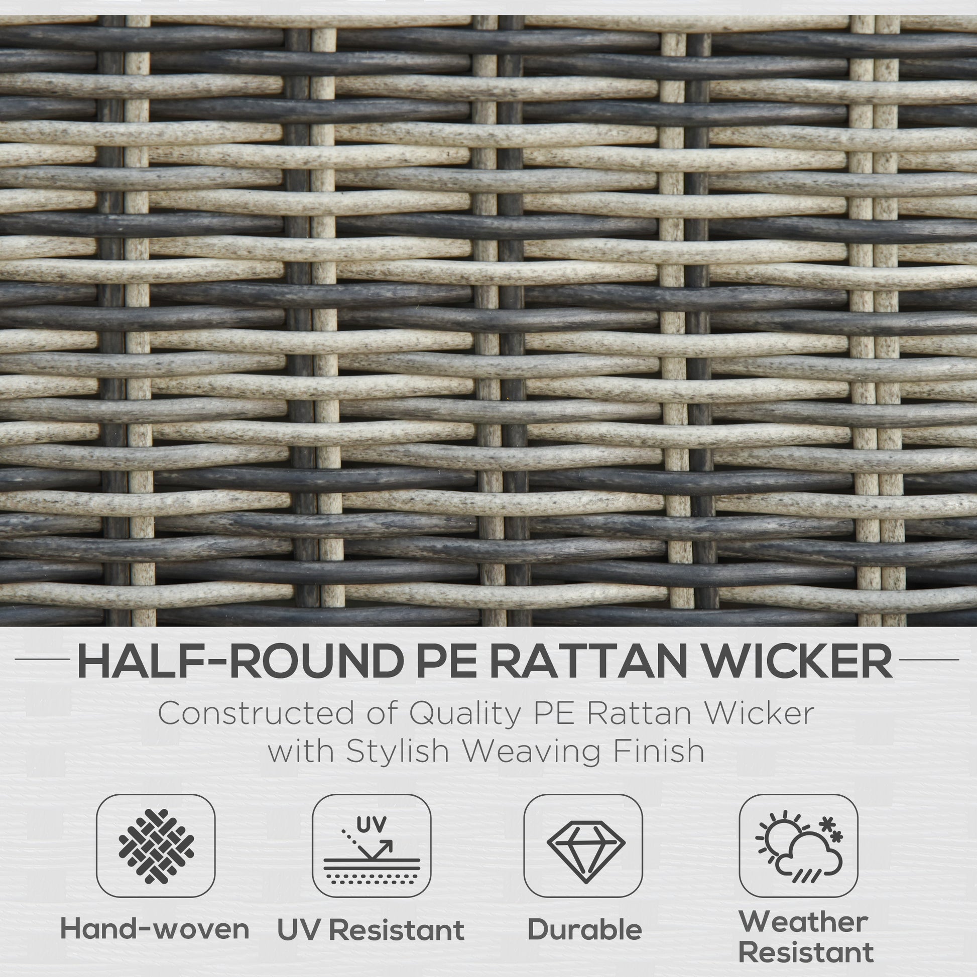 - Color: Mixed Grey Rattan, Grey Cushion