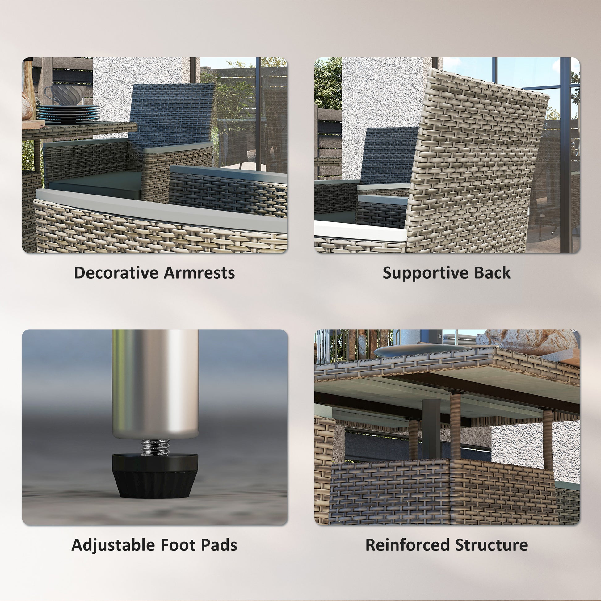 Outsunny Five-Piece Rattan Set, with Wood-Top Table - Grey