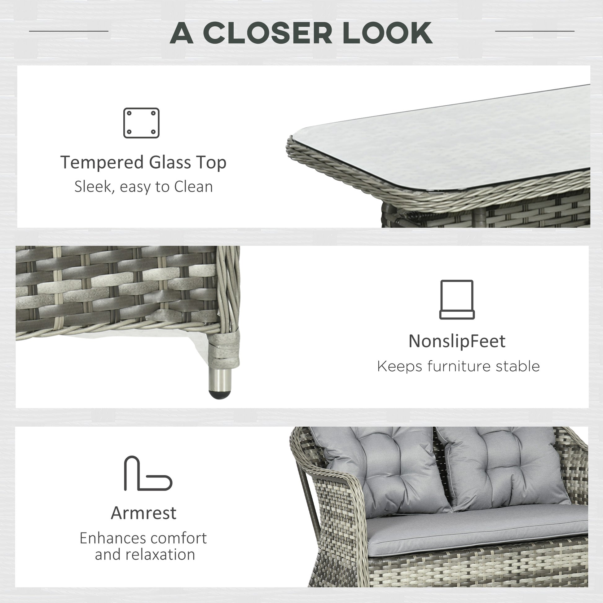 Outsunny Four-Piece Rattan Set, with Glass-Top Table - Grey