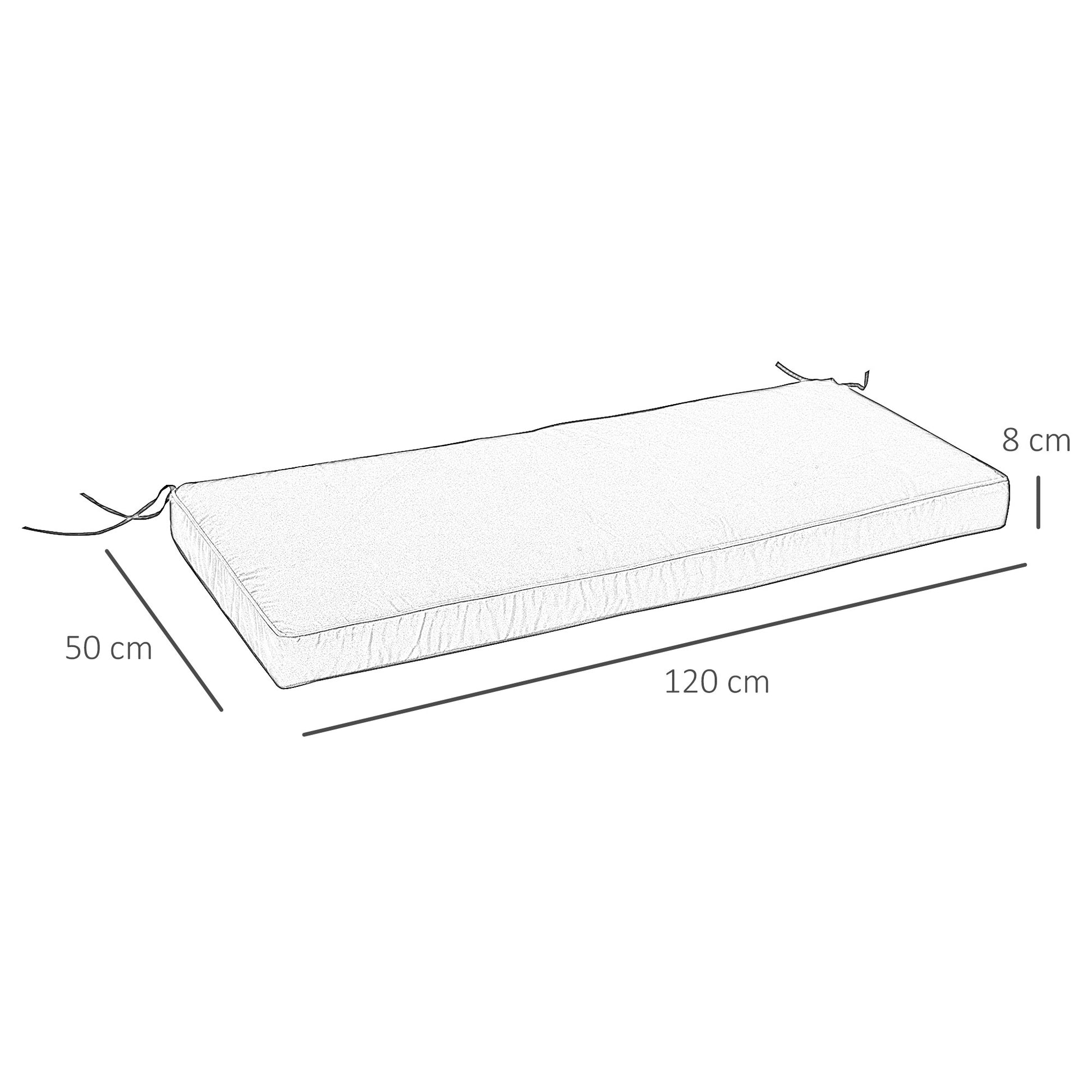 Make hours of uncomfortable sitting outdoors a thing of the past: go for these outdoor seat cushions from Outsunny. Made from polyester to ensure our garden seat cushion is tough and resistant to water and light stains, the cover is made to a 120cm x 50cm size, making it a perfect fit for two-seater benches. And patio bench cushions are filled with thick sponge filling for comfort and finished with two tie fastenings on the top corners to attach safely.