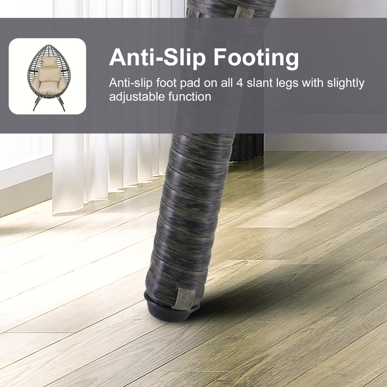 Outsunny Garden Egg Chair, Teardrop Outdoor PE Rattan Chair with Full-body Soft Padded Cushion, Grey
