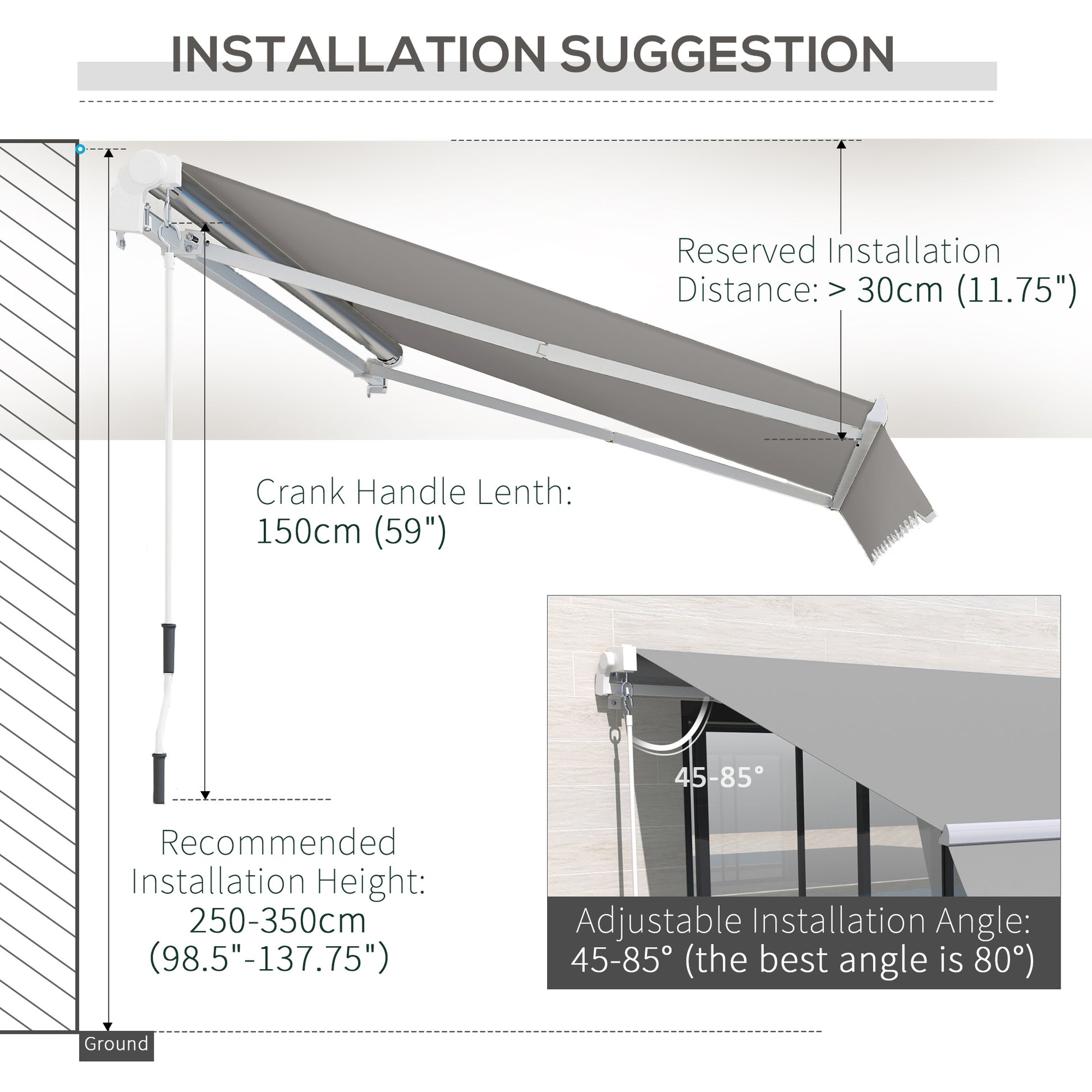 With a thick sun-shielding canopy fixed on an aluminium frame, this 4 x 2.5m awning from Outsunny will give you all the shade you need this season. The manual design means you can set it up wherever needed - whether it's above a door or window, and it easily mounts onto your chosen surface with all accessories included in the package. Finished with a crank handle for easy operation. It's time to enjoy the beauty of the Summer more than ever before.