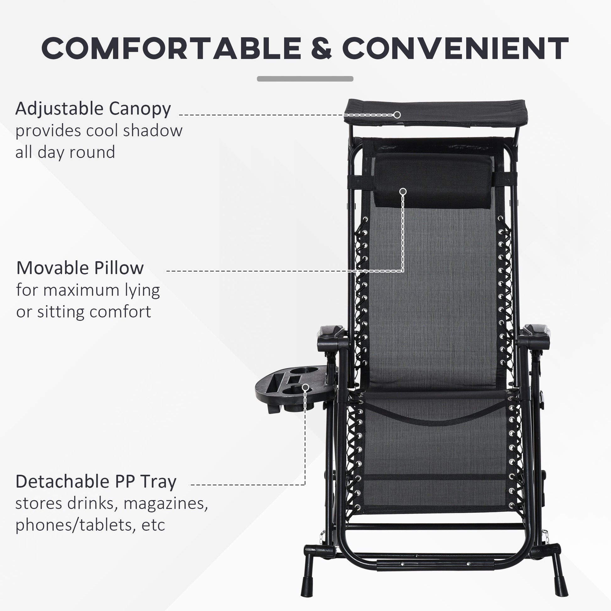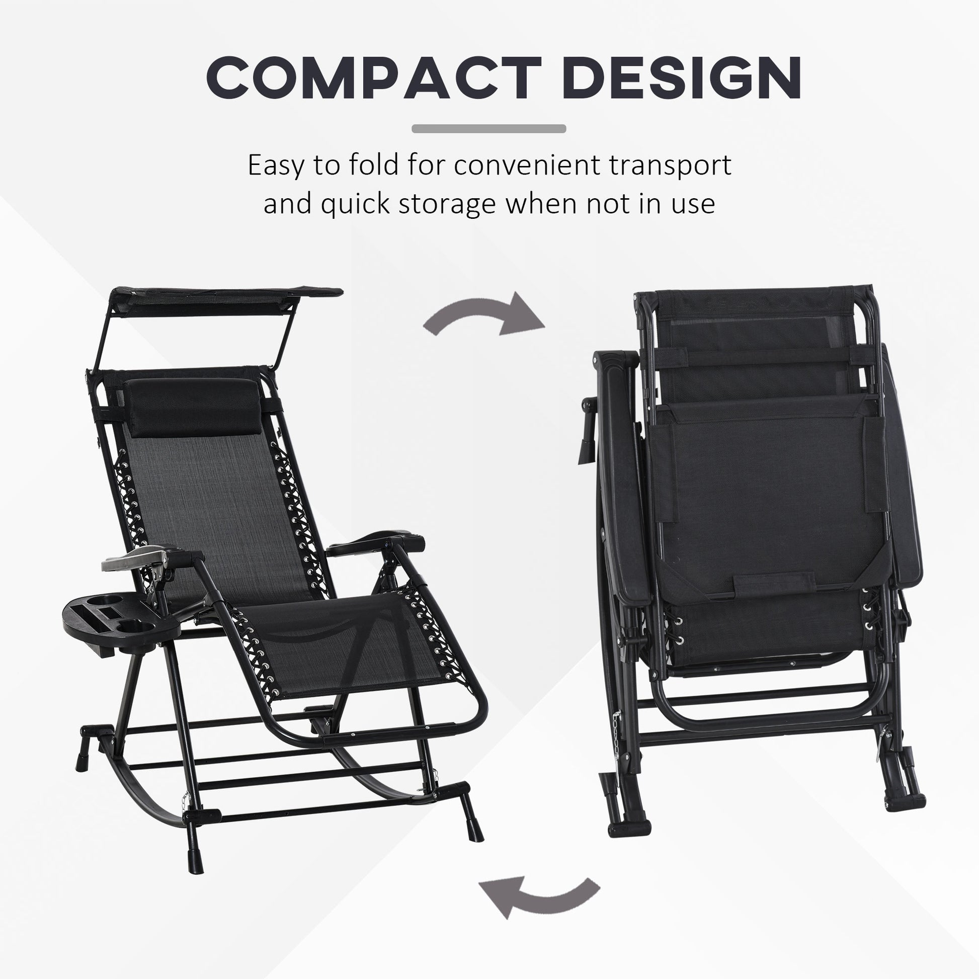 Outsunny Garden Rocking Chair Folding Recliner Outdoor Adjustable Sun Lounger Rocker Zero-Gravity Seat with Headrest Side Holder Patio Deck - Black