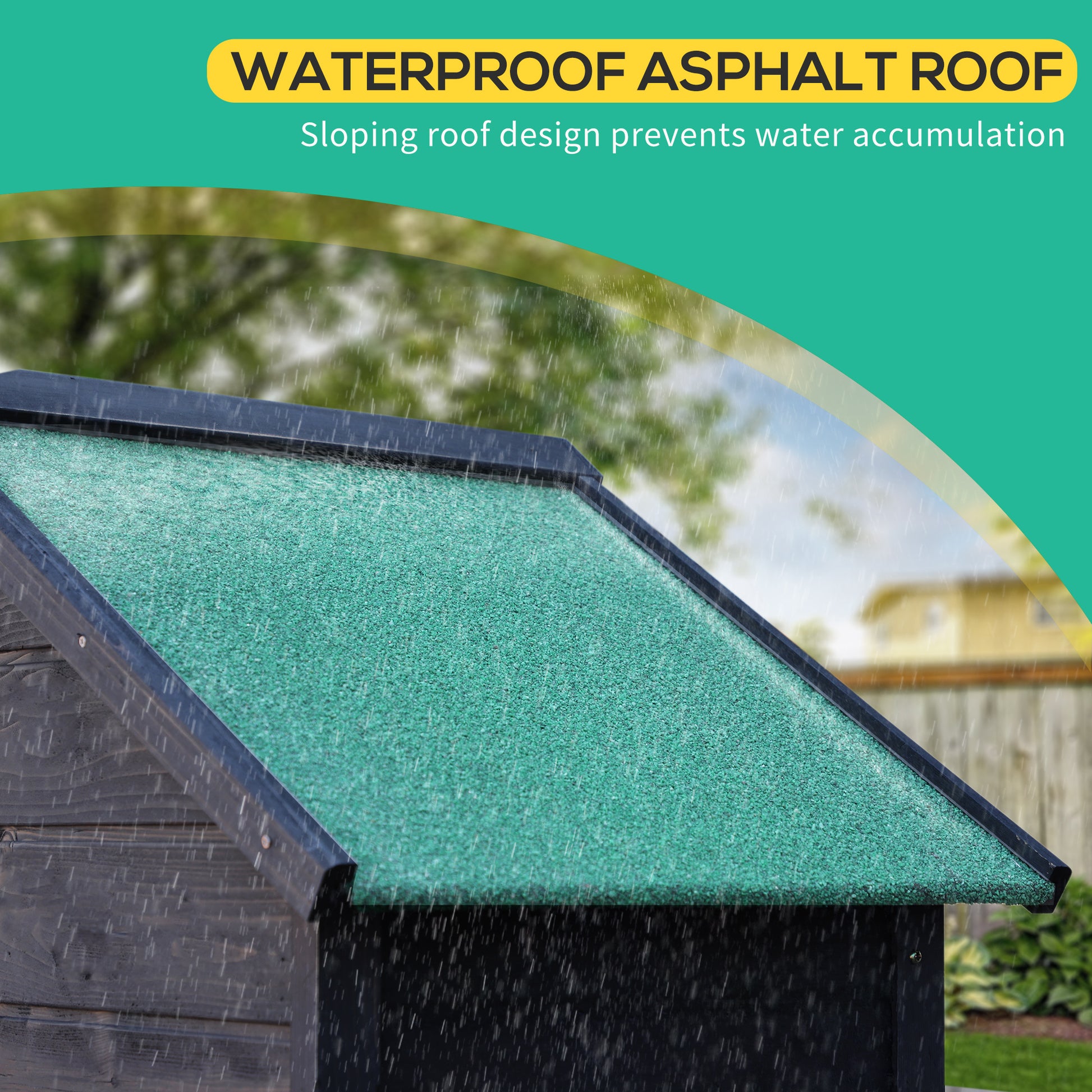 This Outsunny shed comes in a tall, slightly narrow design: a great storage piece for small garden and outdoor spaces. Inside, on the left, there are three shelves for easy organisation, with an open right side which caters for large and long pieces. Made from fir wood for a durable outdoor structure, it's fitted with a sloped roof, so no water build-up. Ashapt covering on the roof to help prevent water entering inside. Complete with a latch on the two doors for security.