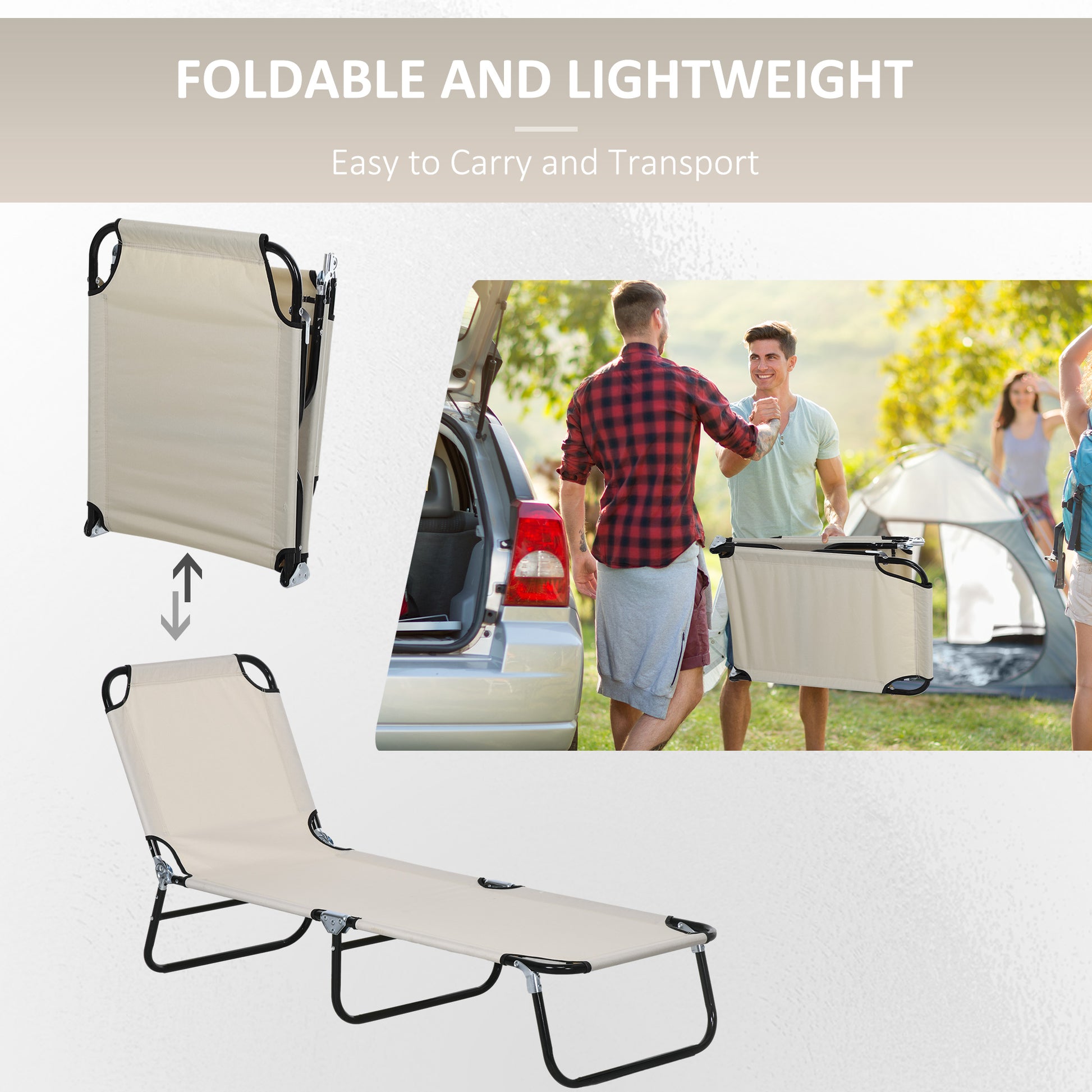 Outsunny Garden Sun Lounger, with Five-Position Back - Cream White