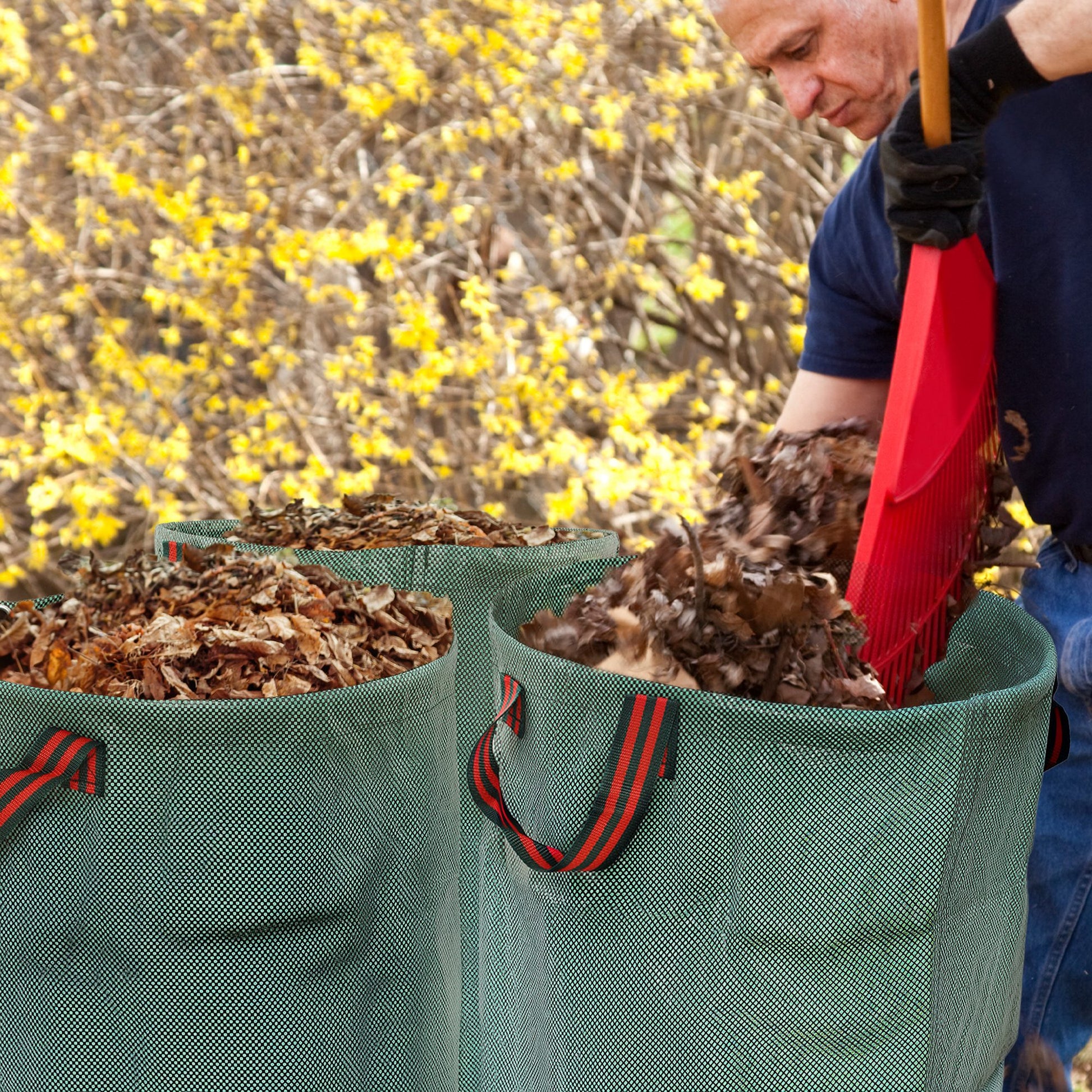 Outsunny Garden Waste Bags, 300L x 3 Heavy Duty Garden Bags, Foldable and Reusable Waste Sacks with Handles for Loading Leaf, Trash, Debris, Green