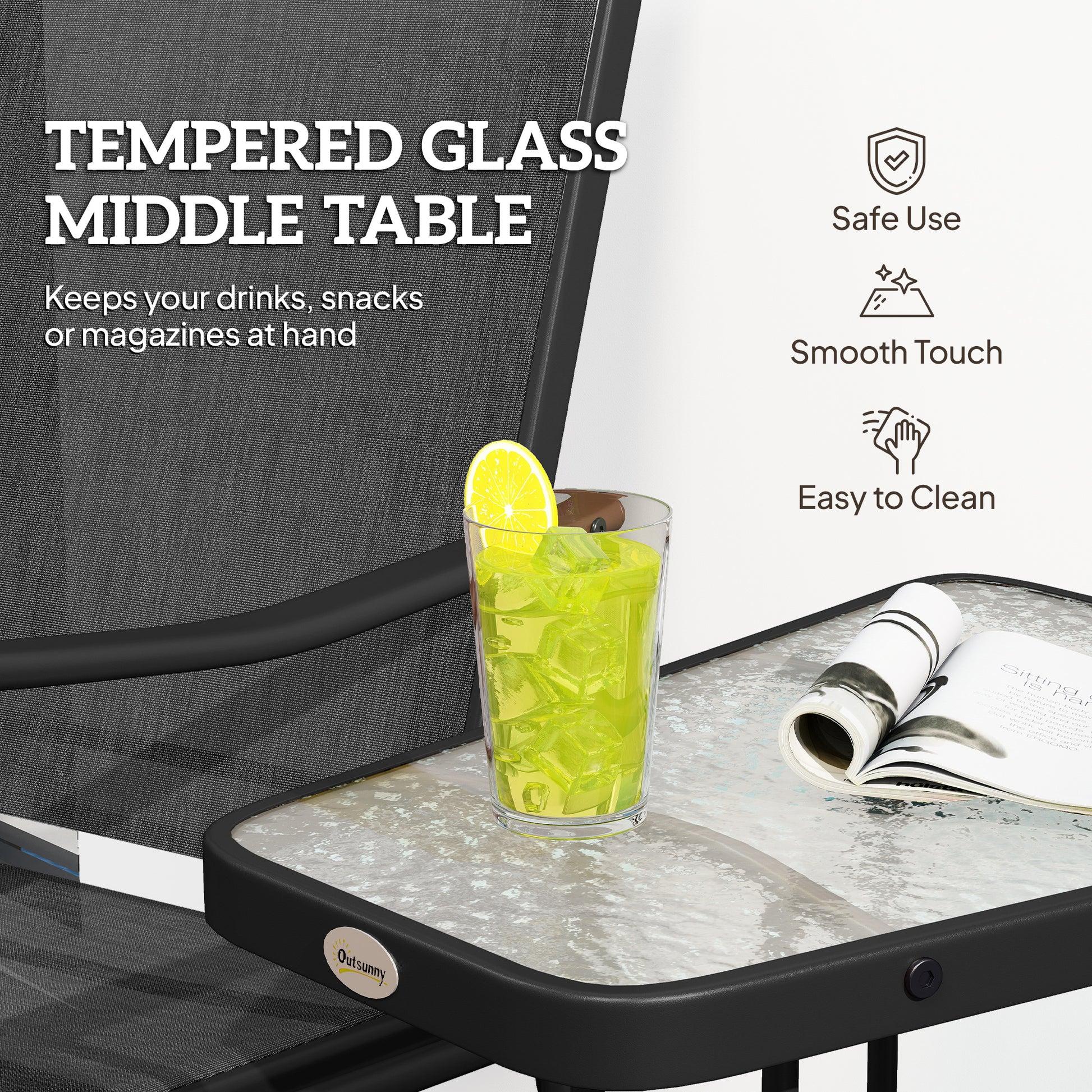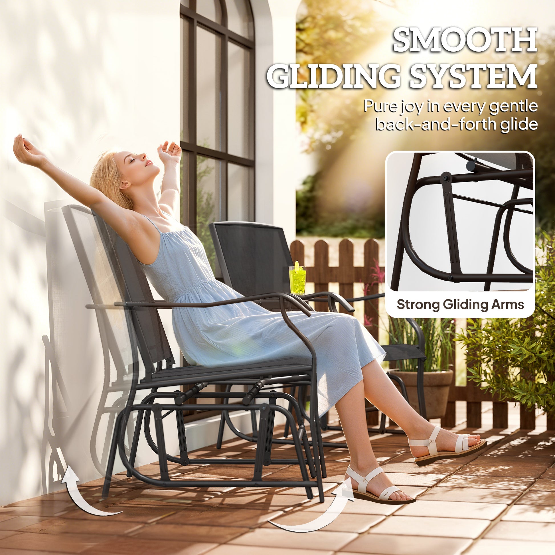 Outsunny Gliding Jack and Jill Seat, with Glass-Top Table - Black