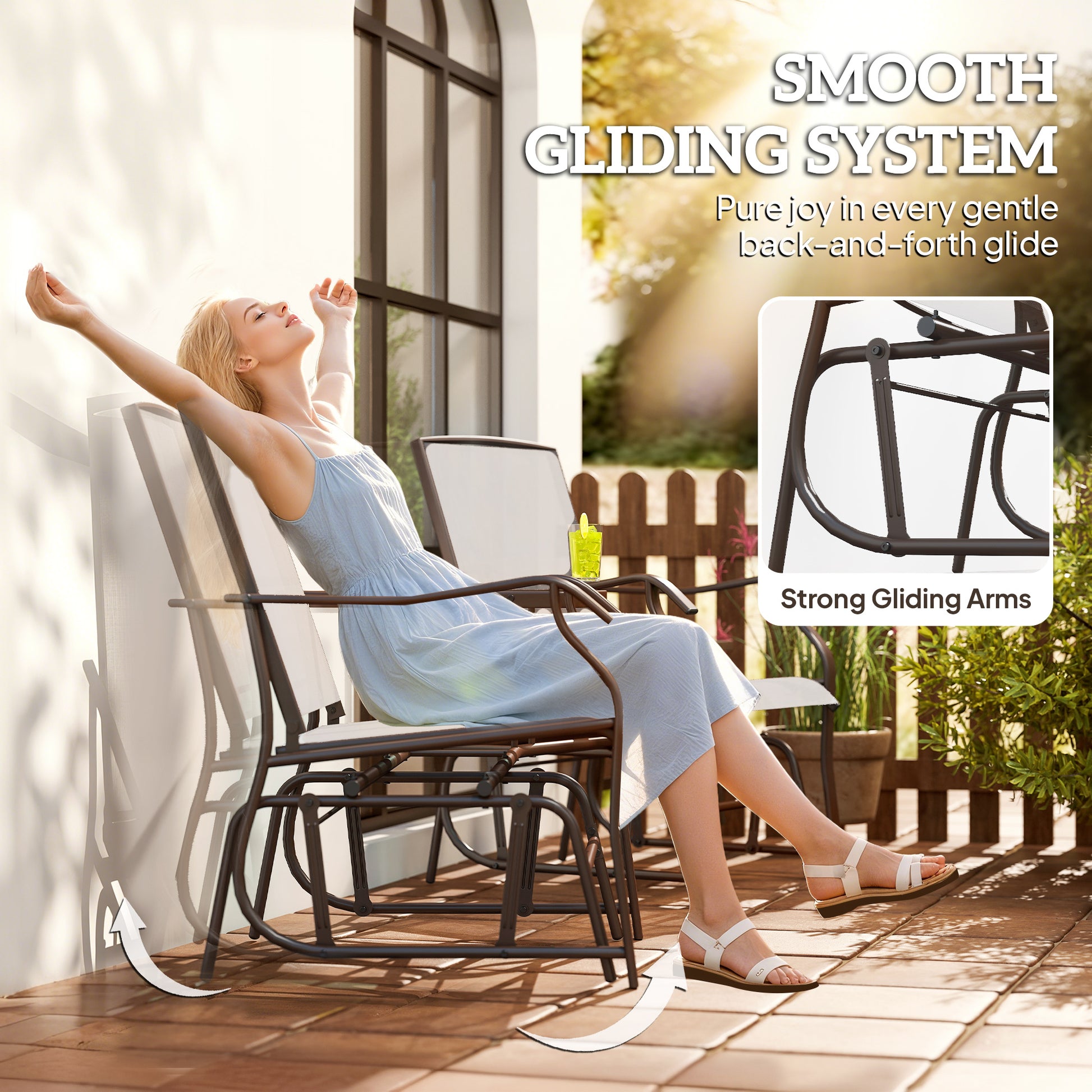 Outsunny Gliding Jack and Jill Seat, with Glass-Top Table - Brown/Beige