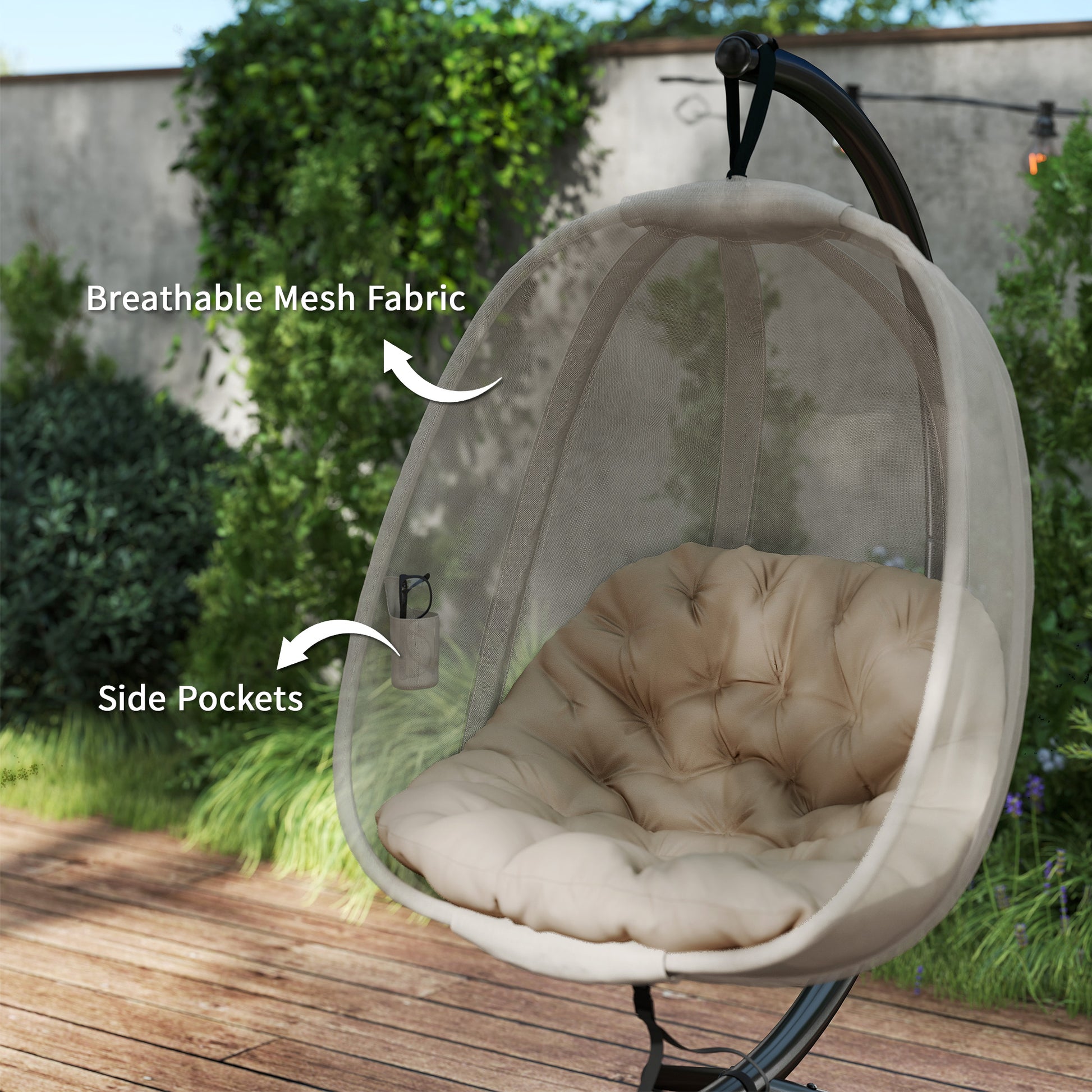 Outsunny Hanging Egg Chair, Folding Texteline Swing Hammock with Side Pocket, Cushion and Stand for Indoor Outdoor, Patio Garden Furniture, Khaki